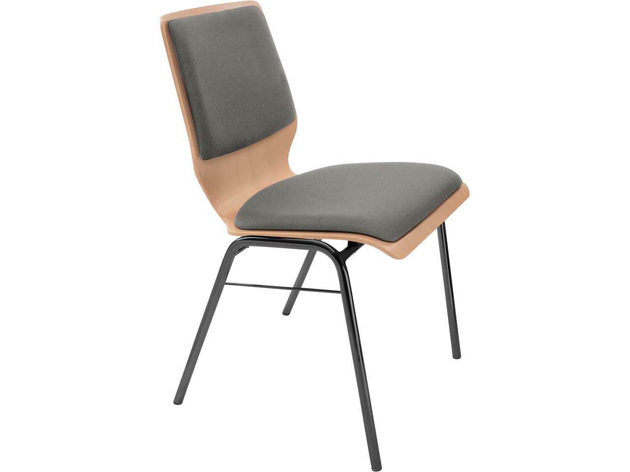 Besucherstuhl "A2" Buche lackiert, Gestell schwarz gepulvert, Steg, Sitz- und Rückenpolster