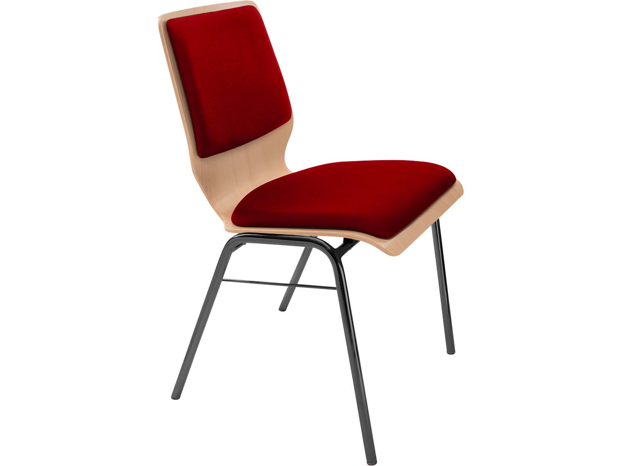 Besucherstuhl "A2" Buche lackiert, Gestell schwarz gepulvert, Steg, Sitz- und Rückenpolster