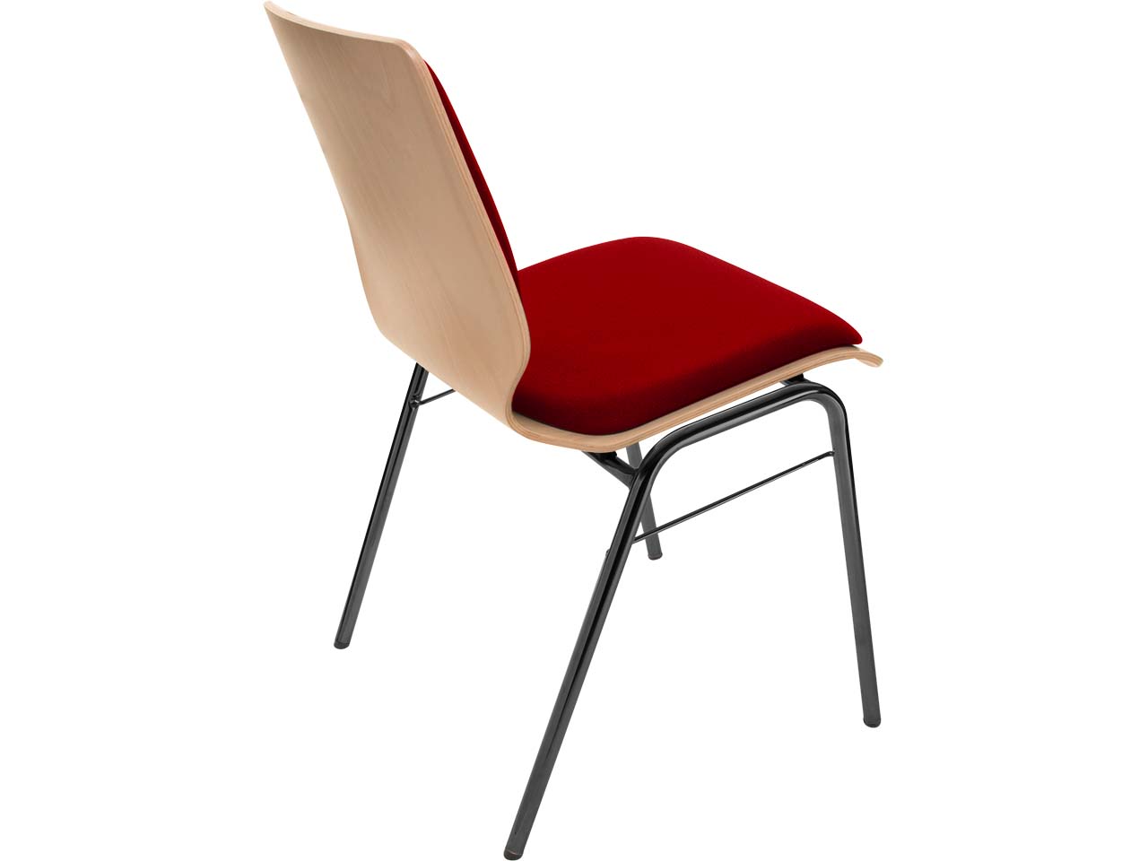 Das harmonische Design des Besucherstuhls passt in verschiedene Raumkonzepte. Das macht ihn ideal für Seminar- und Konferenzräume sowie Wartebereiche. Um einen hohen Sitzkomfort zu gewährleisten, ist das Möbelstück mit einer Polsterung an Sitzfläche und Rückenlehne versehen. Bei Bedarf kann diese ausgetauscht werden, was die Langlebigkeit des Stuhls erhöht. Die Polsterung wird auf eine Schale aus Buchenholz angebracht, welche mit Wasserlack nach B1 lackiert ist. Der Besucherstuhl mit Steg ist dadurch schwer entflammbar und beständig gegen Desinfektionsmittel. Das pulverbeschichtete Stahlgestell betont die stabile und strapazierfähige Qualität des Stuhls zusätzlich.