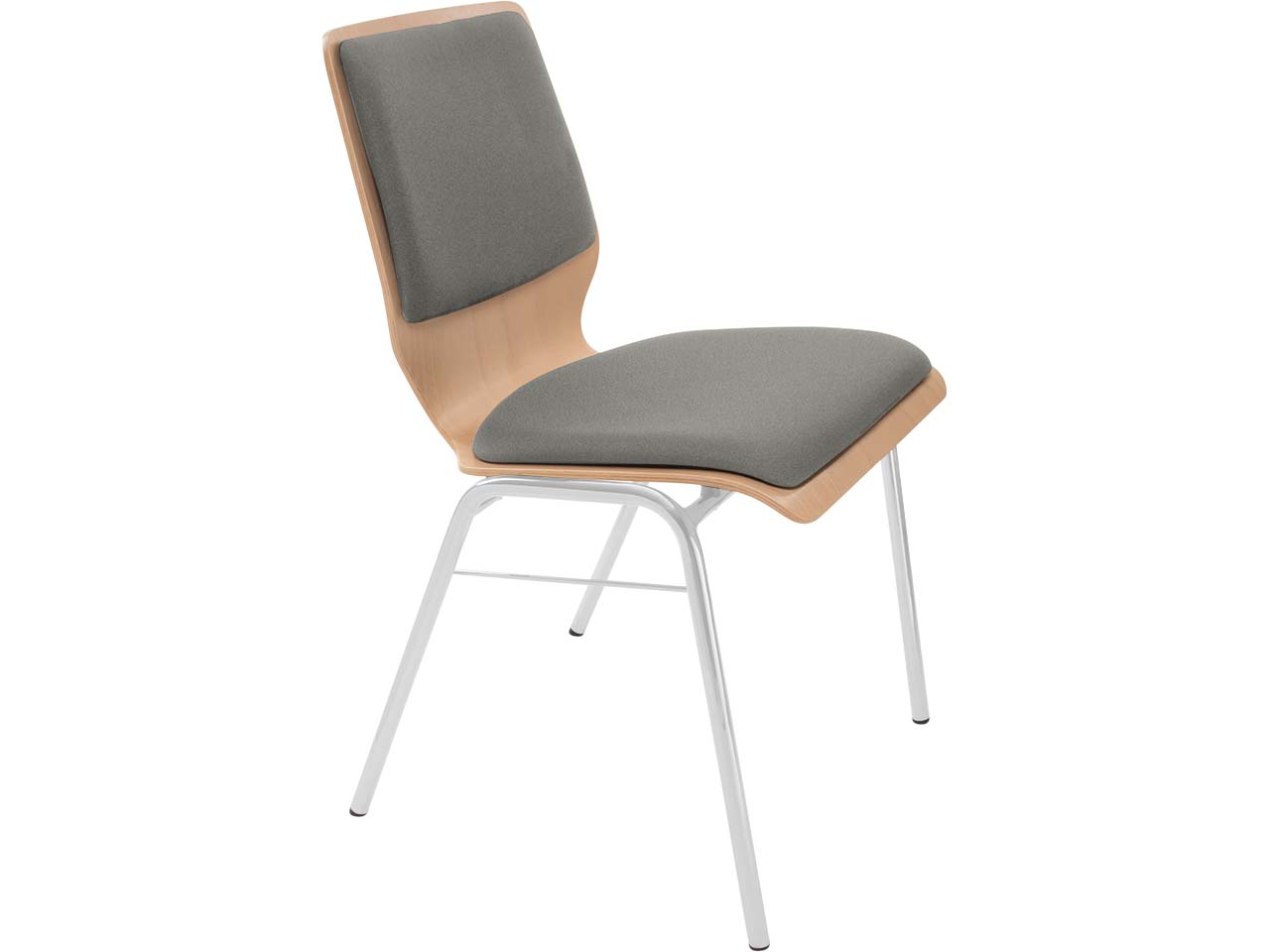 Sanft geschwungene Formgebung und gepolsterte Sitz- und Rückenfläche bieten maximalen Komfort: Der Besucherstuhl ist ideal für Wartebereiche, Konferenz- und Seminarräume geeignet. Die Sitzschale ist aus Buchenholz gefertigt und mit Wasserlack nach B1 schwer entflammbar und beständig gegen Desinfektionsmittel. Der Besucherstuhl ist sogar 12-fach stapelbar und dadurch leicht und platzsparend unterzubringen. Das Stahlgestell, welches mit Pulverbeschichtung behandelt wurde, gewährleistet eine hohe Stabilität während des Sitzens.