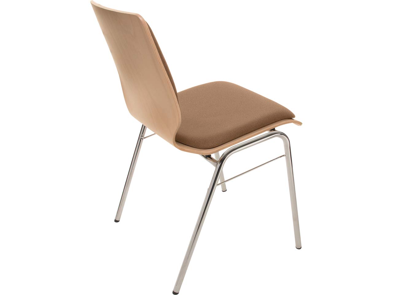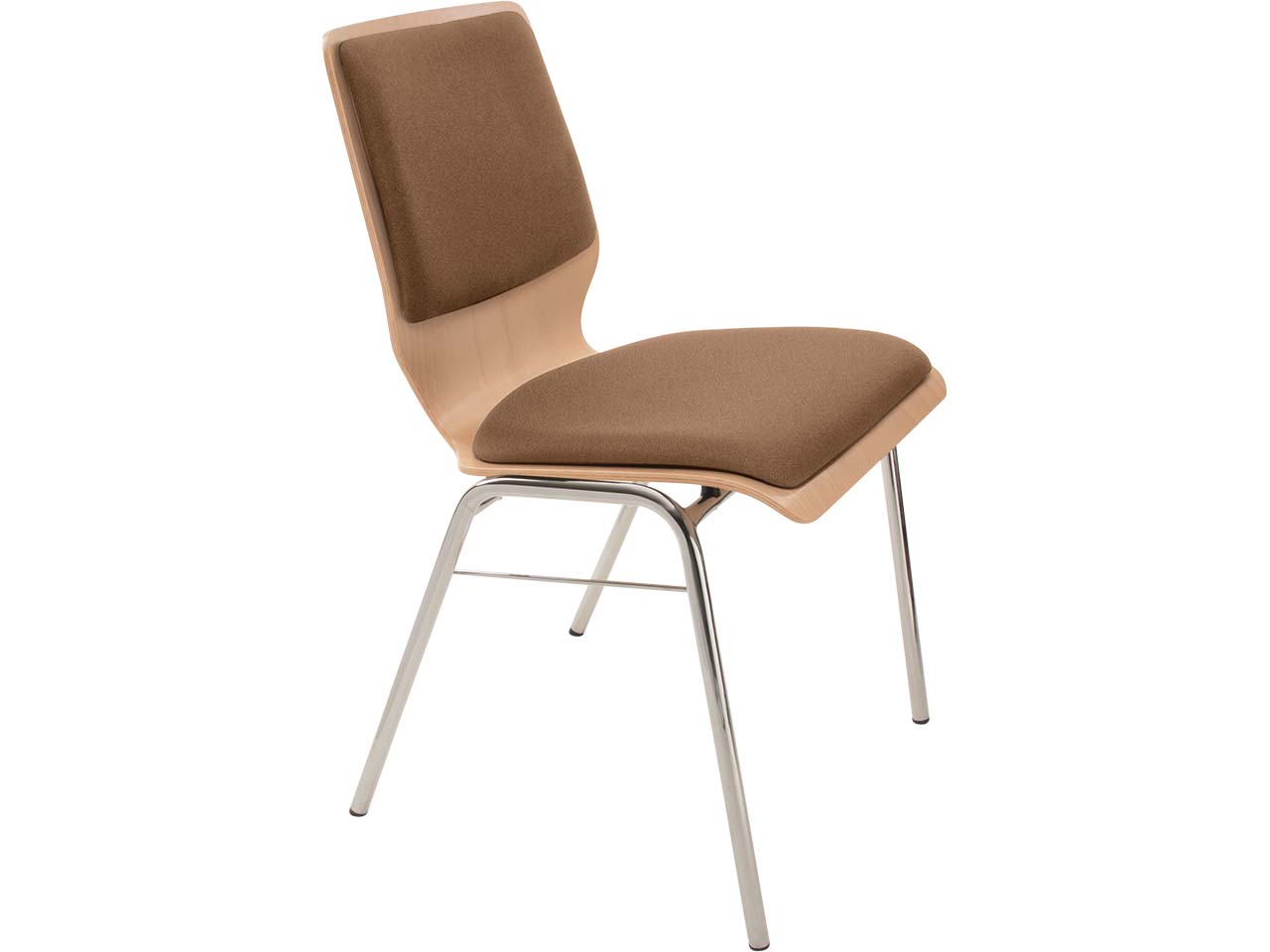 Viel Komfort bei Veranstaltungen oder beim Warten: Der Besucherstuhl überzeugt mit weichem Sitz- und Rückenpolster. Die austauschbare Polsterung ist an einer Schale aus Buchenholz angebracht, die mit Wasserlack nach B1 lackiert ist. Die Lackierung sorgt dafür, dass der Stuhl schwer entflammbar und beständig gegen Desinfektionsmittel ist. Der Besucherstuhl ist bis zu 12-fach stapelbar und dadurch platzsparend unterzubringen.