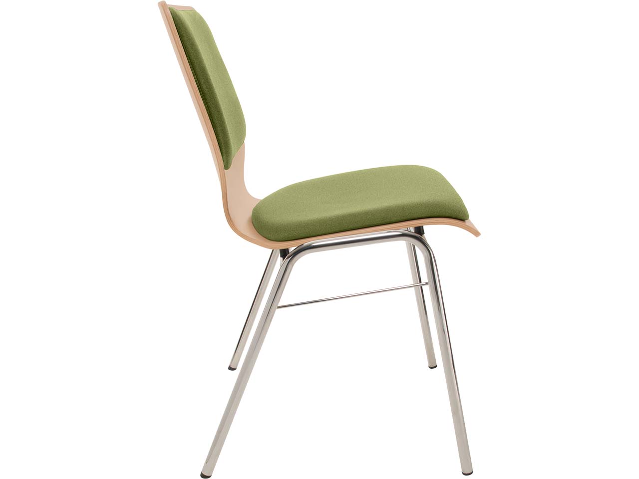 Besucherstuhl "A2" Buche lackiert, Gestell verchromt, Steg, Sitz- und Rückenpolster