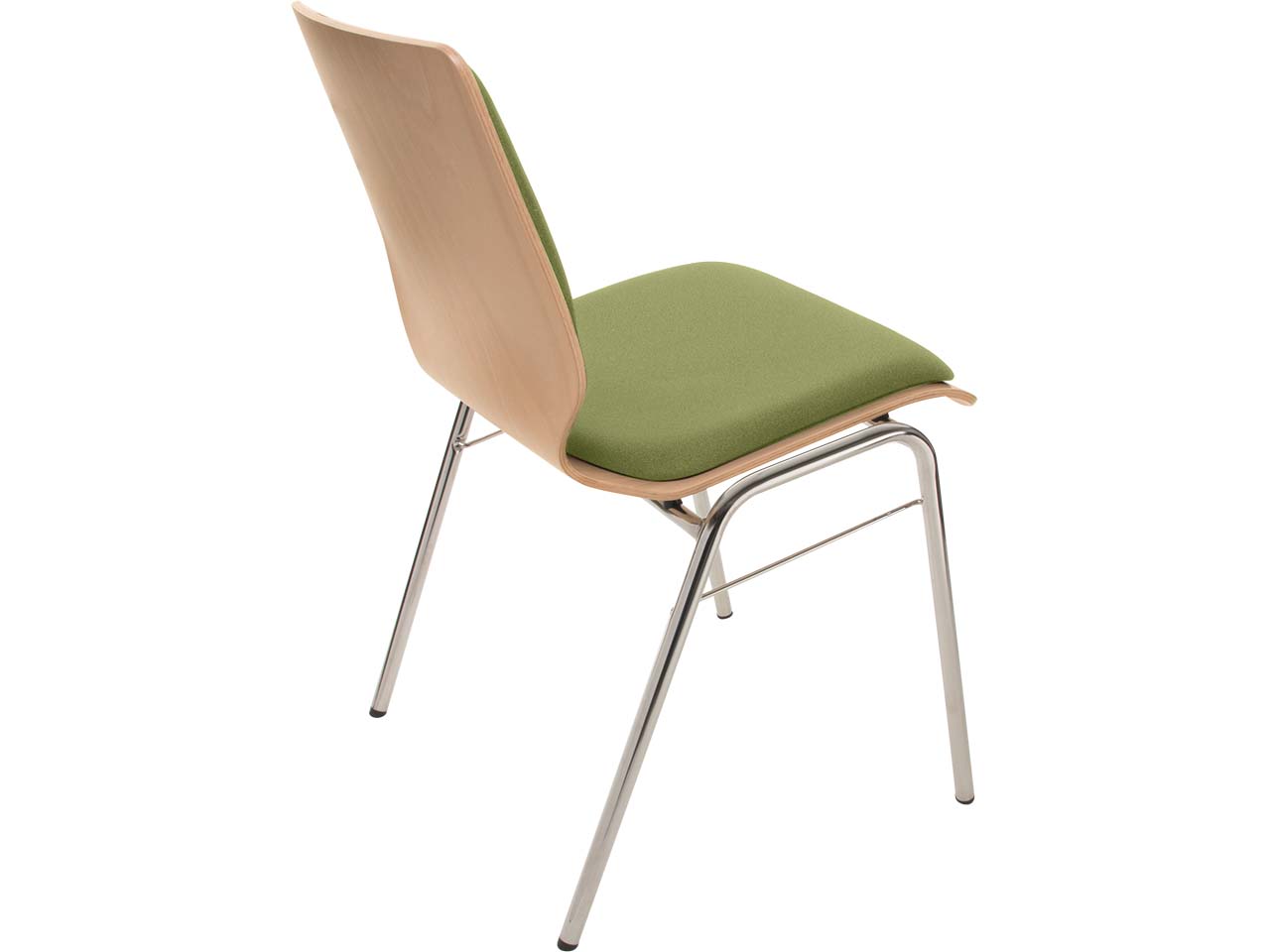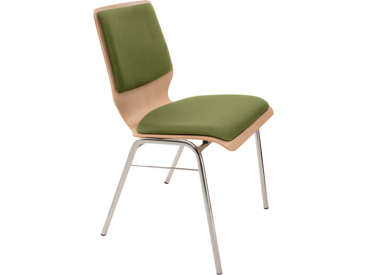 Viel Komfort bei Veranstaltungen oder beim Warten: Der Besucherstuhl überzeugt mit weichem Sitz- und Rückenpolster. Die austauschbare Polsterung ist an einer Schale aus Buchenholz angebracht, die mit Wasserlack nach B1 lackiert ist. Die Lackierung sorgt dafür, dass der Stuhl schwer entflammbar und beständig gegen Desinfektionsmittel ist. Der Besucherstuhl ist bis zu 12-fach stapelbar und dadurch platzsparend unterzubringen.
