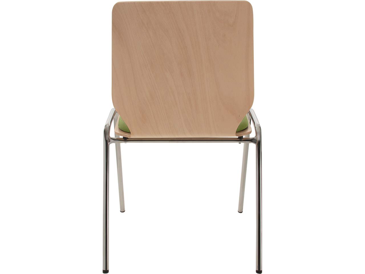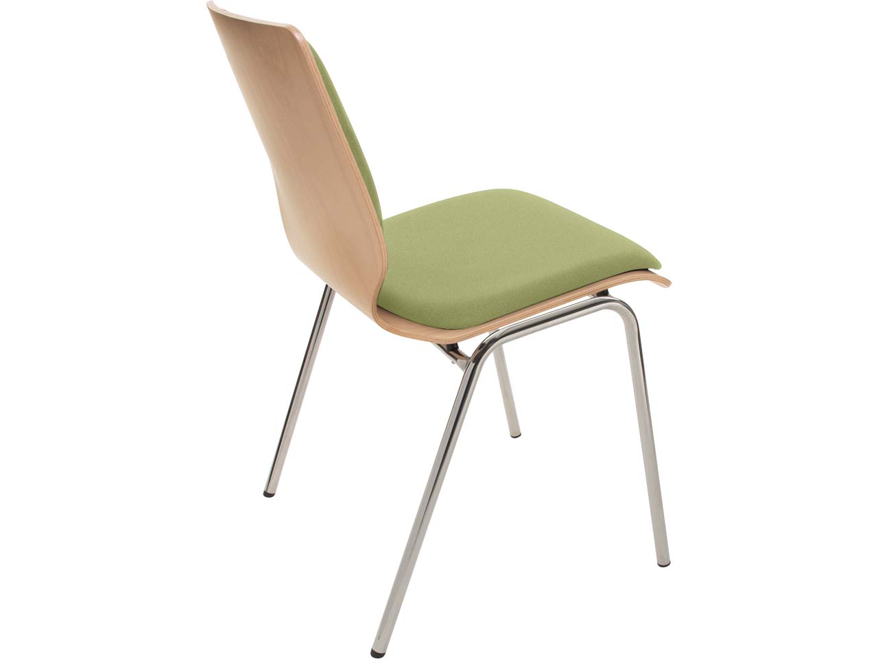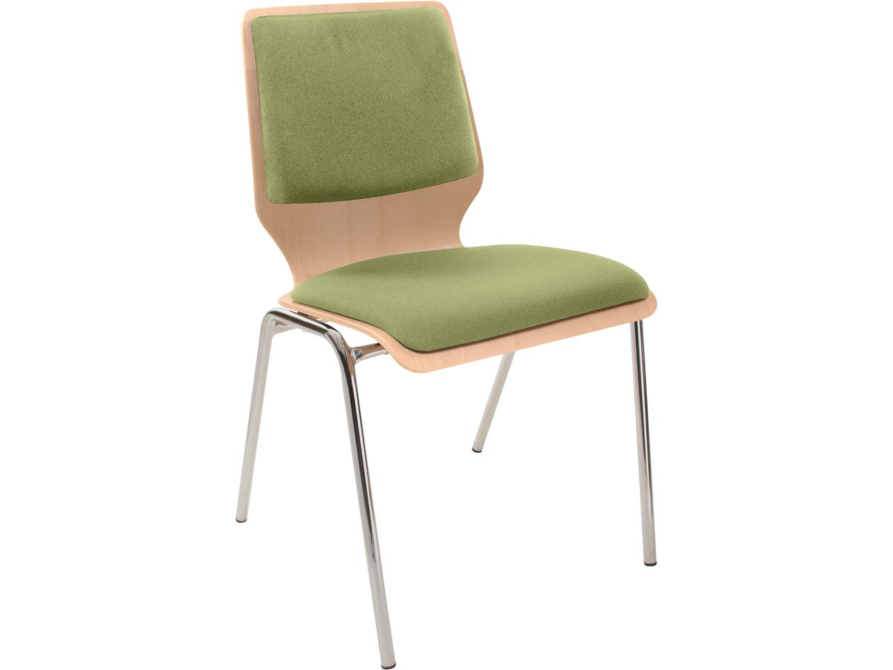 Bei Veranstaltungen, Seminaren, Konferenzen oder im Wartebereich hat dieser Besucherstuhl seinen großen Auftritt. Durch die Polsterung des Rückens und der Sitzfläche entsteht beim Sitzen ein hoher Komfort. Angebracht sind die austauschbaren Polster auf einer Schale aus Buchenholz, die mit Wasserlack nach B1 lackiert ist. Die Lackierung sorgt dafür, dass das Sitzmöbel schwer entflammbar und beständig gegen Desinfektionsmittel ist. Sanfte, harmonische Formgebung und ein stabiles, verchromtes Stahlgestell runden den Stuhl ab.