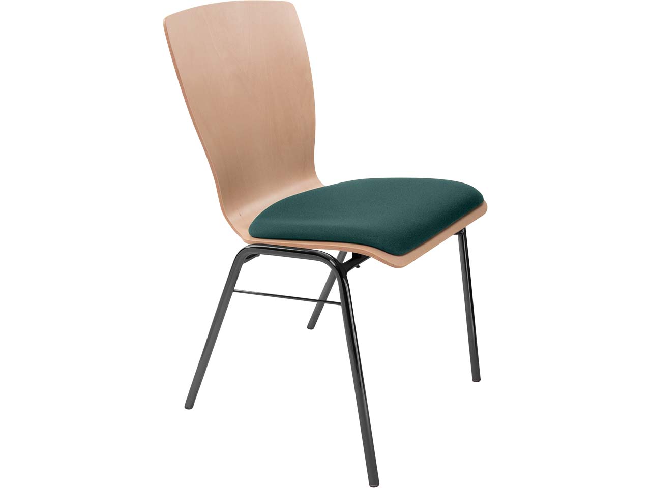 Besucherstuhl "A29" Buche lackiert, Gestell schwarz gepulvert, Steg, Sitzpolster