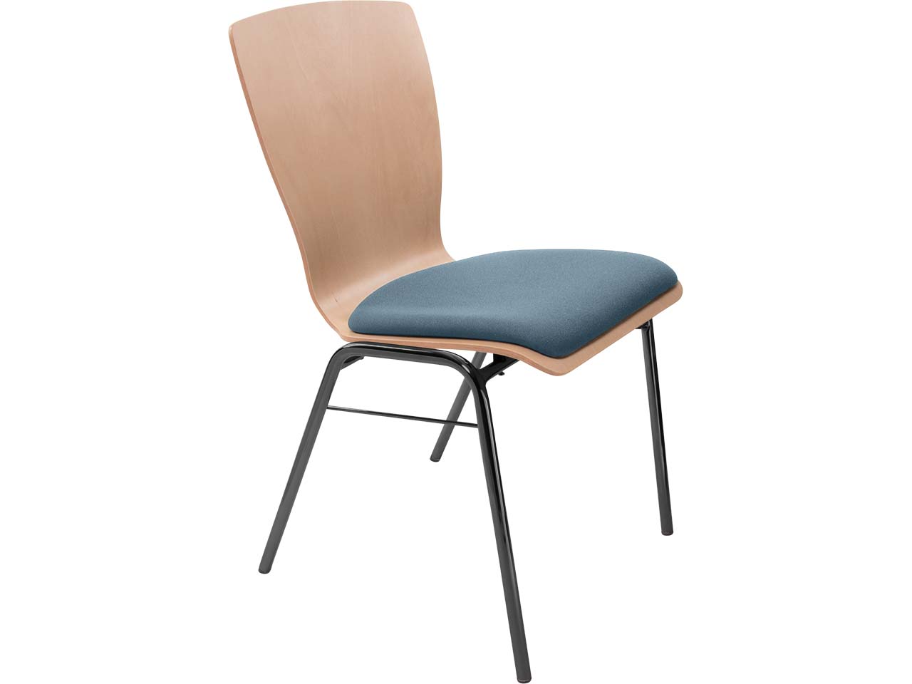 Besucherstuhl "A29" Buche lackiert, Gestell schwarz gepulvert, Steg, Sitzpolster