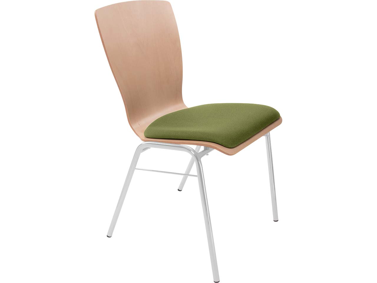 Besucherstuhl "A29" Buche lackiert, Gestell silber gepulvert, Steg, Sitzpolster