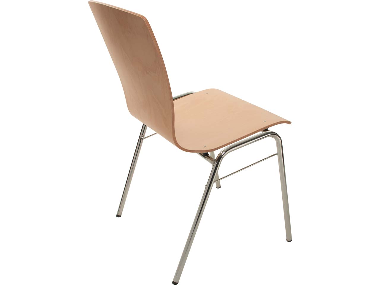 In Konferenz- und Seminarräumen hat dieser klassische Besucherstuhl seinen großen Auftritt. Das minimalistische Design mit natürlichem Buchenholz fügt sich in jedes Raumkonzept ein und benötigt nicht viel Platz. Der Stuhl mit Steg lässt sich zur Unterbringung platzsparend stapeln. Die Holzschale ist mit Wasserlack nach B1 lackiert, was das Sitzmöbel schwer entflammbar und beständig gegen Desinfektionsmittel macht. Das verchromte Stahlgestell sorgt für hohe Stabilität.