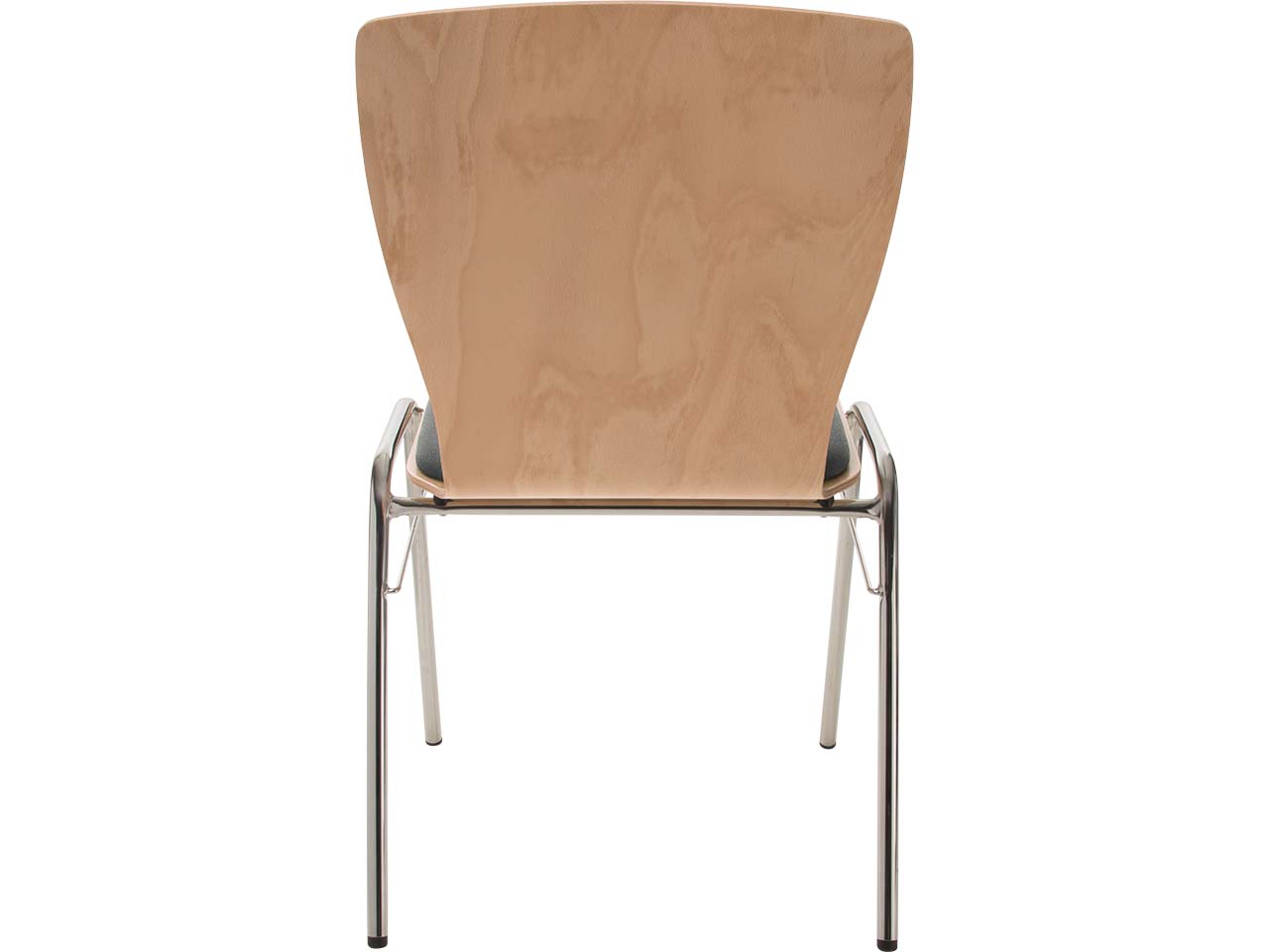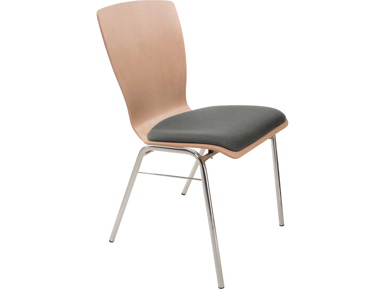 Dieser Besucherstuhl ist die ideale Sitzlösung für Konferenzen, Veranstaltungen, Events, Seminare oder Wartebereiche. Er ist schlicht designt, überzeugt mit harmonischen Formen und natürlicher Optik. Die Sitzschale ist aus Buchenholz gefertigt, das mit Wasserlack nach B1 lackiert ist. Die Lackierung macht den Stuhl schwer entflammbar und beständig gegen Desinfektionsmittel. Höchster Sitzkomfort entsteht durch die Polsterung. Diese lässt sich bei Bedarf austauschen und erneuern, was den Stuhl besonders langlebig macht. Durch den Steg ist der Stuhl problemlos bis zu 12-fach stapelbar und so platzsparend unterzubringen. Das verchromte Stahlgestell sorgt für hohe Stabilität.