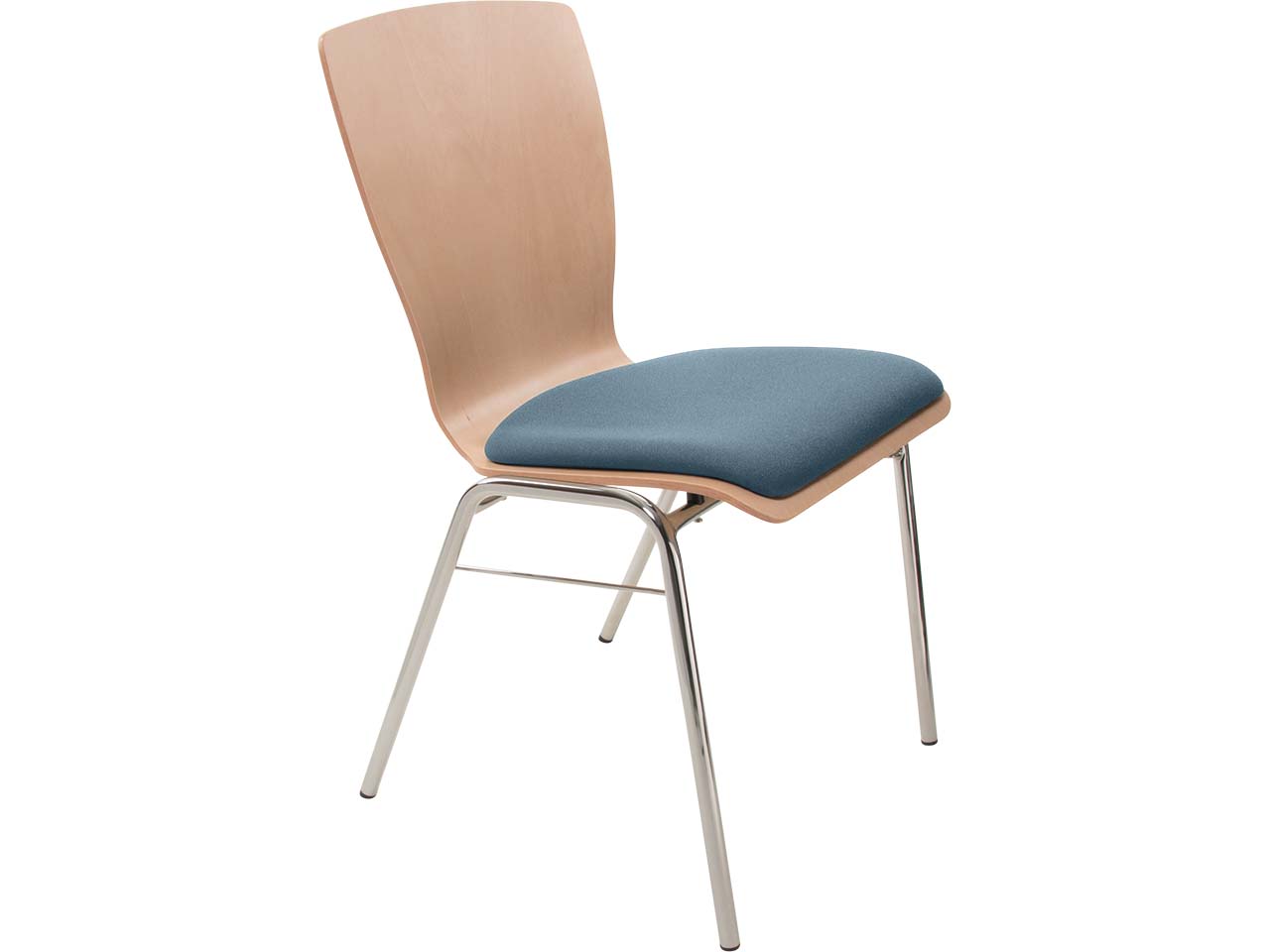 Besucherstuhl "A29" Buche lackiert, Gestell verchromt, Steg, Sitzpolster