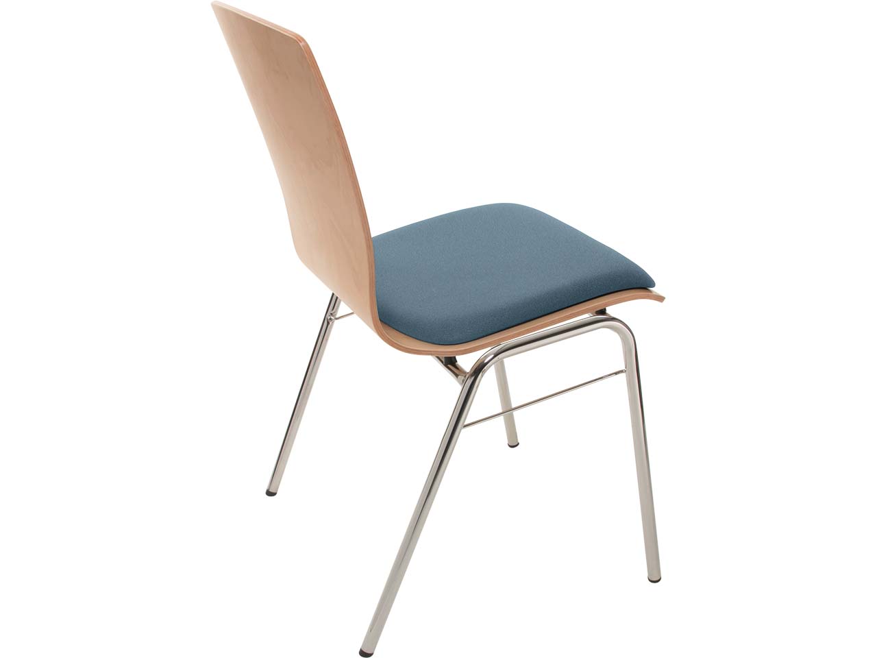 Dieser Besucherstuhl ist die ideale Sitzlösung für Konferenzen, Veranstaltungen, Events, Seminare oder Wartebereiche. Er ist schlicht designt, überzeugt mit harmonischen Formen und natürlicher Optik. Die Sitzschale ist aus Buchenholz gefertigt, das mit Wasserlack nach B1 lackiert ist. Die Lackierung macht den Stuhl schwer entflammbar und beständig gegen Desinfektionsmittel. Höchster Sitzkomfort entsteht durch die Polsterung. Diese lässt sich bei Bedarf austauschen und erneuern, was den Stuhl besonders langlebig macht. Durch den Steg ist der Stuhl problemlos bis zu 12-fach stapelbar und so platzsparend unterzubringen. Das verchromte Stahlgestell sorgt für hohe Stabilität.