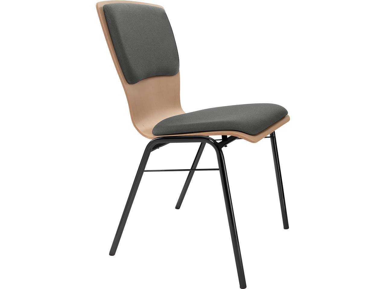 Besucherstuhl "A29" Buche lackiert, Gestell schwarz gepulvert, Steg, Sitz- und Rückenpolster