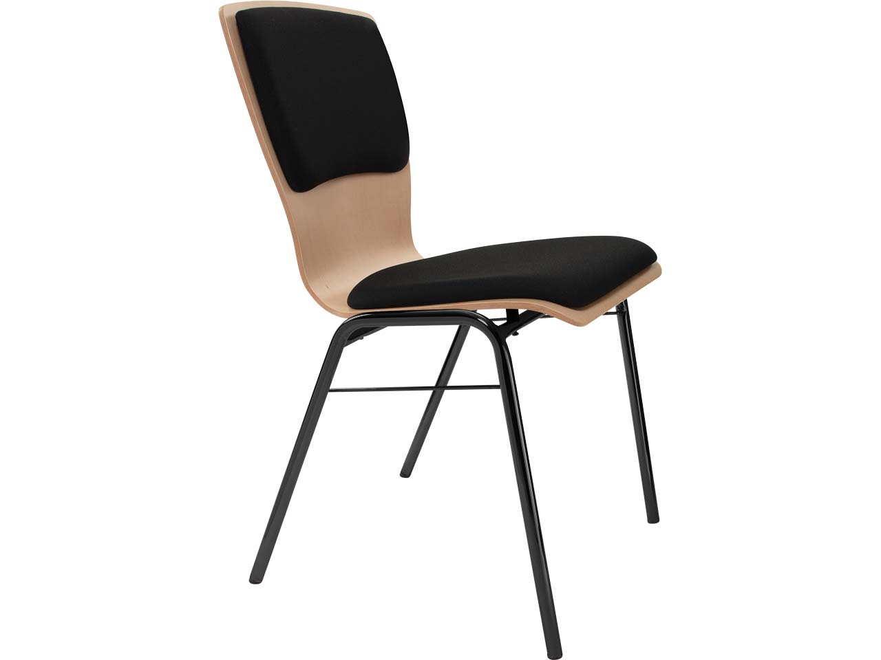 Besucherstuhl "A29" Buche lackiert, Gestell schwarz gepulvert, Steg, Sitz- und Rückenpolster
