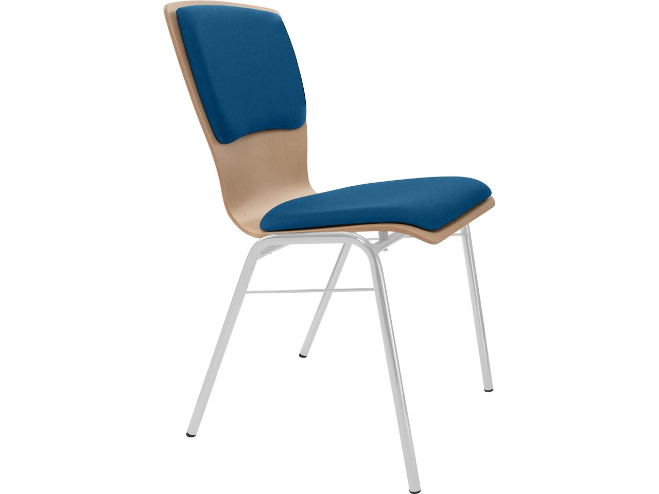 Besucherstuhl "A29" Buche lackiert, Gestell silber gepulvert, Steg, Sitz- und Rückenpolster
