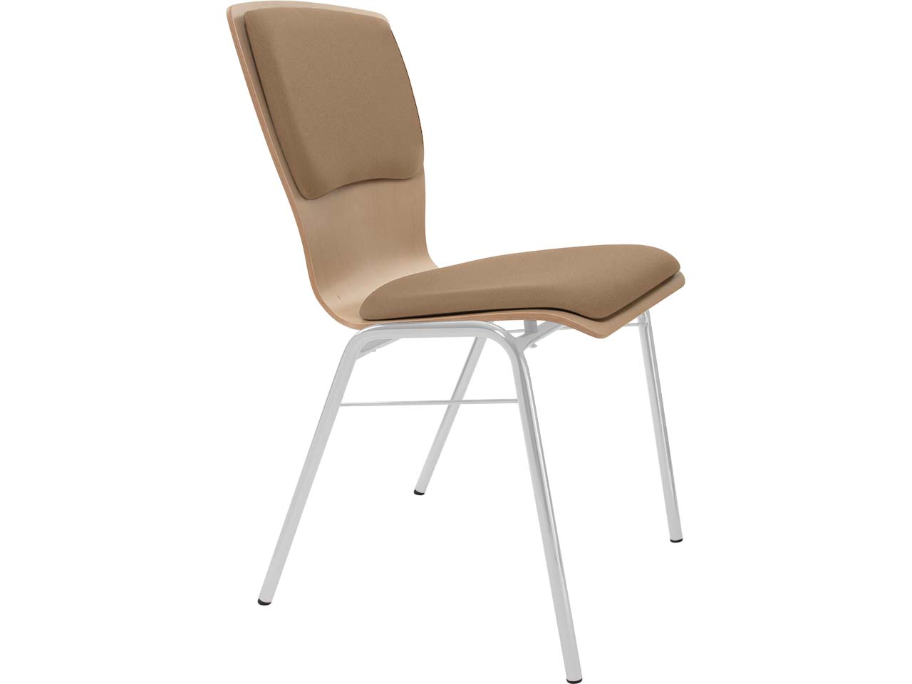Besucherstuhl "A29" Buche lackiert, Gestell silber gepulvert, Steg, Sitz- und Rückenpolster