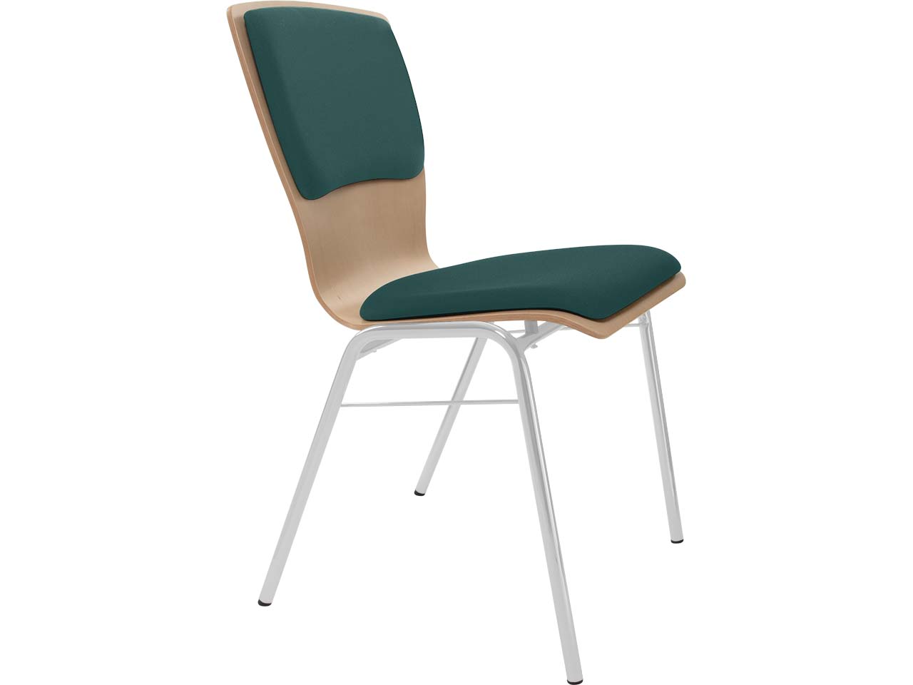 Besucherstuhl "A29" Buche lackiert, Gestell silber gepulvert, Steg, Sitz- und Rückenpolster