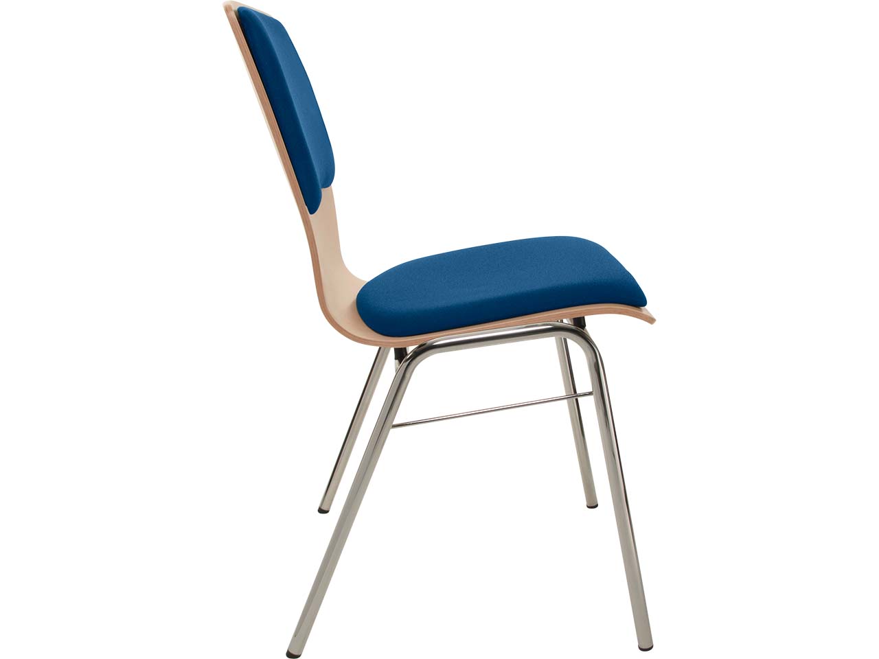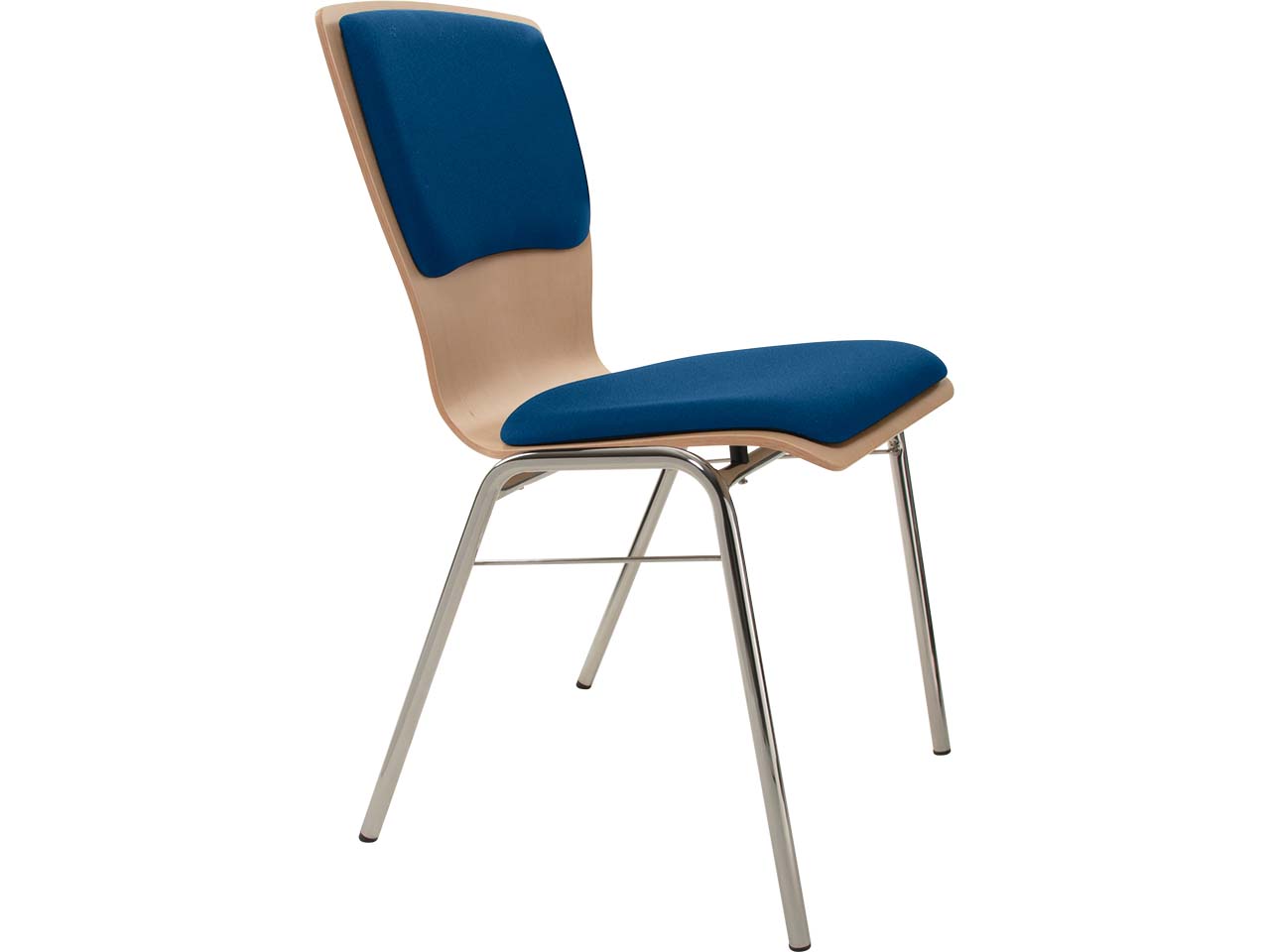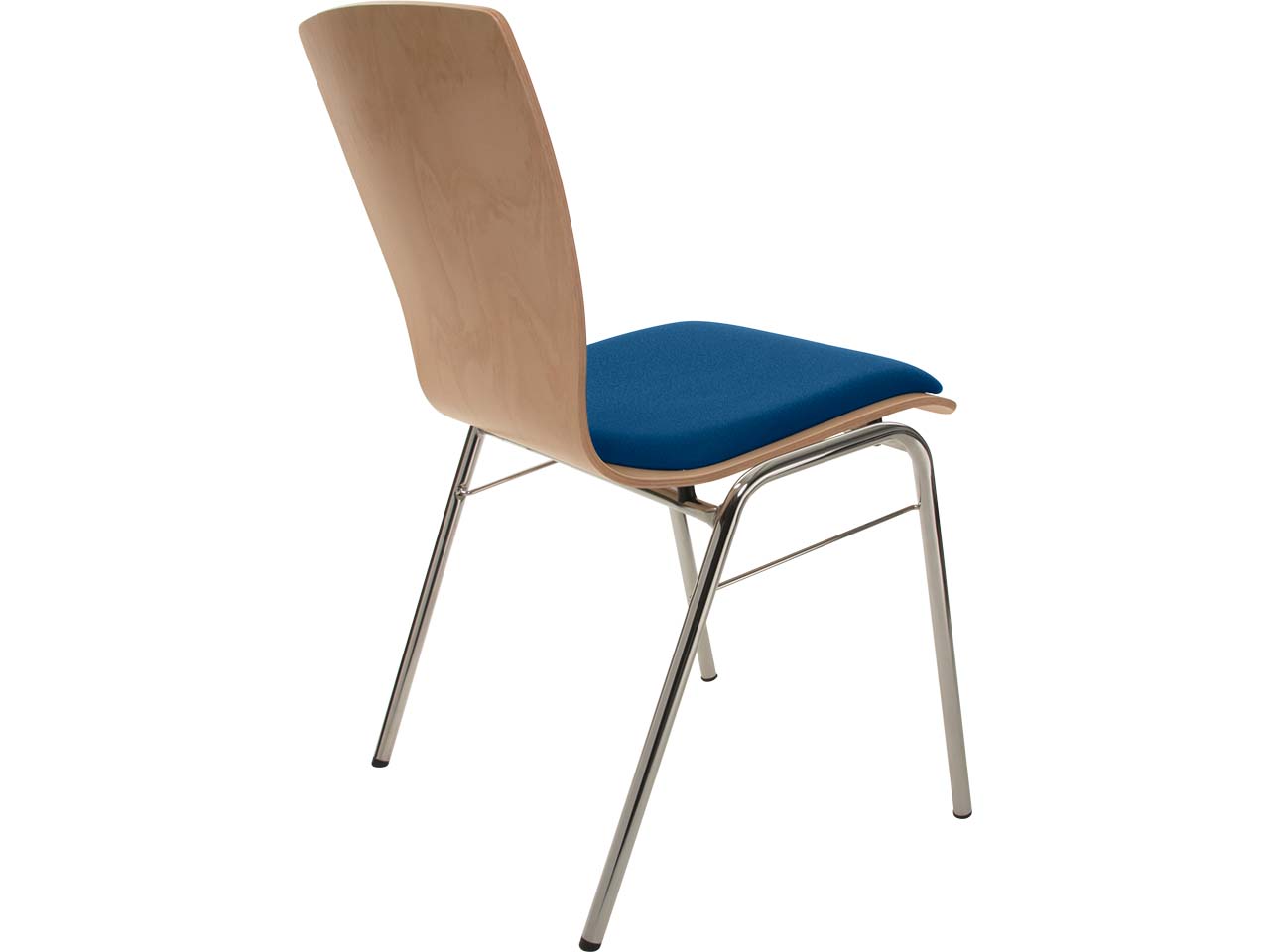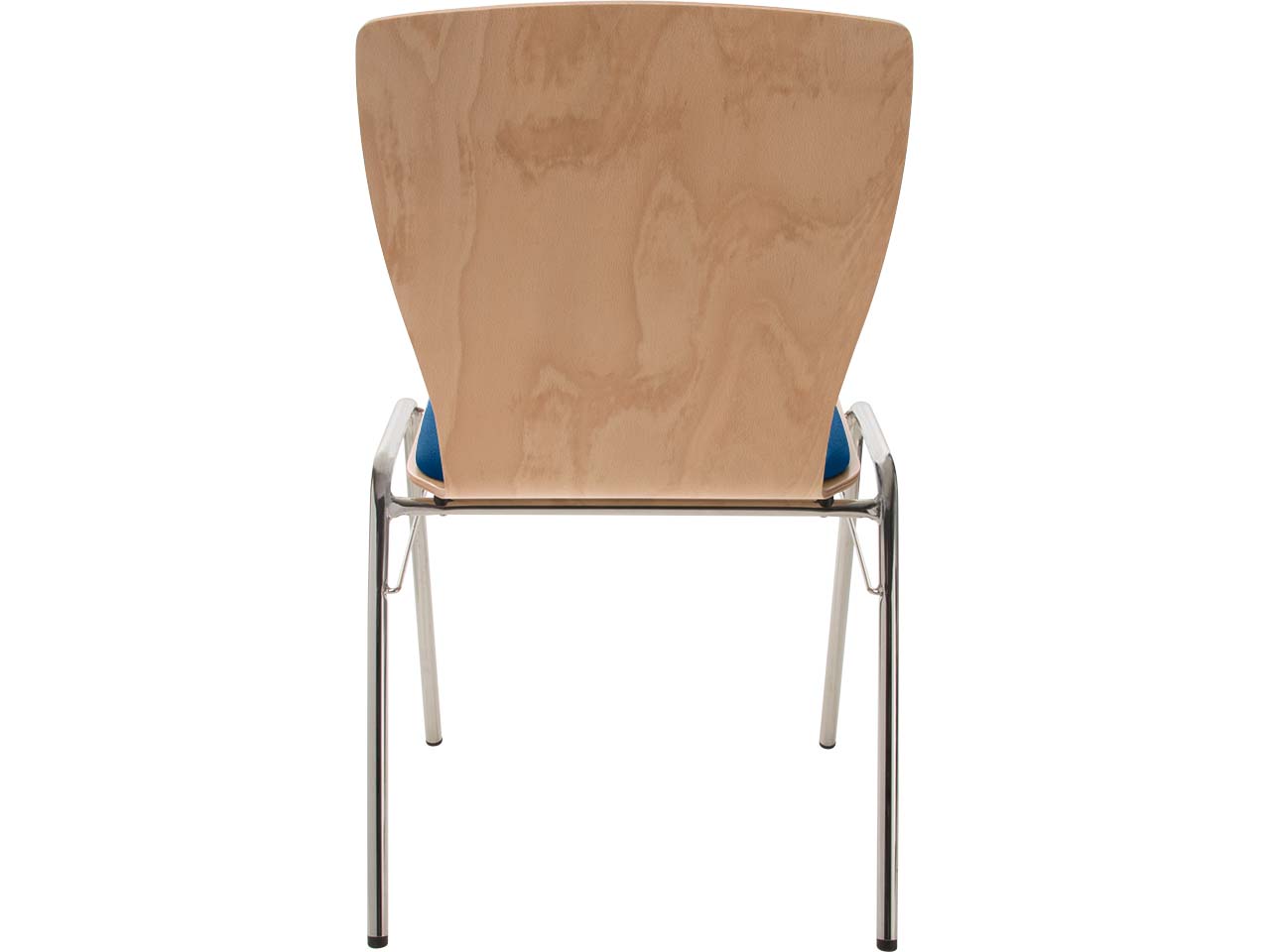 Dieser Besucherstuhl ist die ideale Sitzlösung für Konferenzen, Veranstaltungen, Events, Seminare oder Wartebereiche. Er ist schlicht designt, überzeugt mit harmonischen Formen und natürlicher Optik. Die Sitzschale ist aus Buchenholz gefertigt, das mit Wasserlack nach B1 lackiert ist. Die Lackierung macht den Stuhl schwer entflammbar und beständig gegen Desinfektionsmittel. Höchster Sitzkomfort entsteht durch die Polsterung auf der Sitzfläche und am Rücken. Diese lassen sich bei Bedarf austauschen und erneuern, was den Stuhl besonders langlebig macht. Durch den Steg ist der Stuhl problemlos bis zu 12-fach stapelbar und so platzsparend unterzubringen. Das verchromte Stahlgestell sorgt für hohe Stabilität.