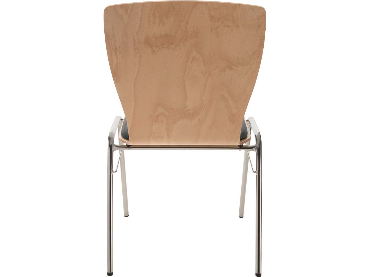 Dieser Besucherstuhl ist die ideale Sitzlösung für Konferenzen, Veranstaltungen, Events, Seminare oder Wartebereiche. Er ist schlicht designt, überzeugt mit harmonischen Formen und natürlicher Optik. Die Sitzschale ist aus Buchenholz gefertigt, das mit Wasserlack nach B1 lackiert ist. Die Lackierung macht den Stuhl schwer entflammbar und beständig gegen Desinfektionsmittel. Höchster Sitzkomfort entsteht durch die Polsterung auf der Sitzfläche und am Rücken. Diese lassen sich bei Bedarf austauschen und erneuern, was den Stuhl besonders langlebig macht. Durch den Steg ist der Stuhl problemlos bis zu 12-fach stapelbar und so platzsparend unterzubringen. Das verchromte Stahlgestell sorgt für hohe Stabilität.