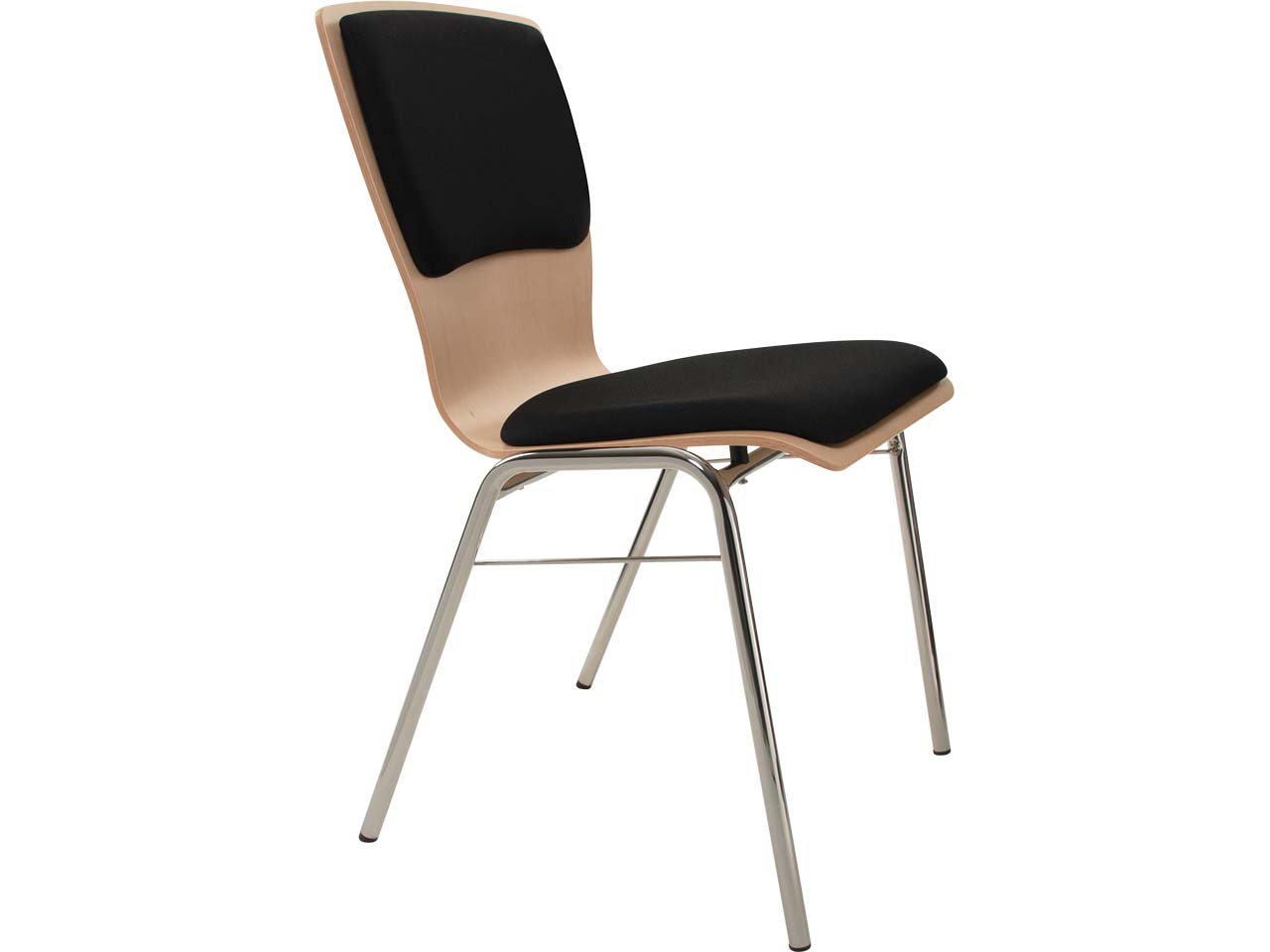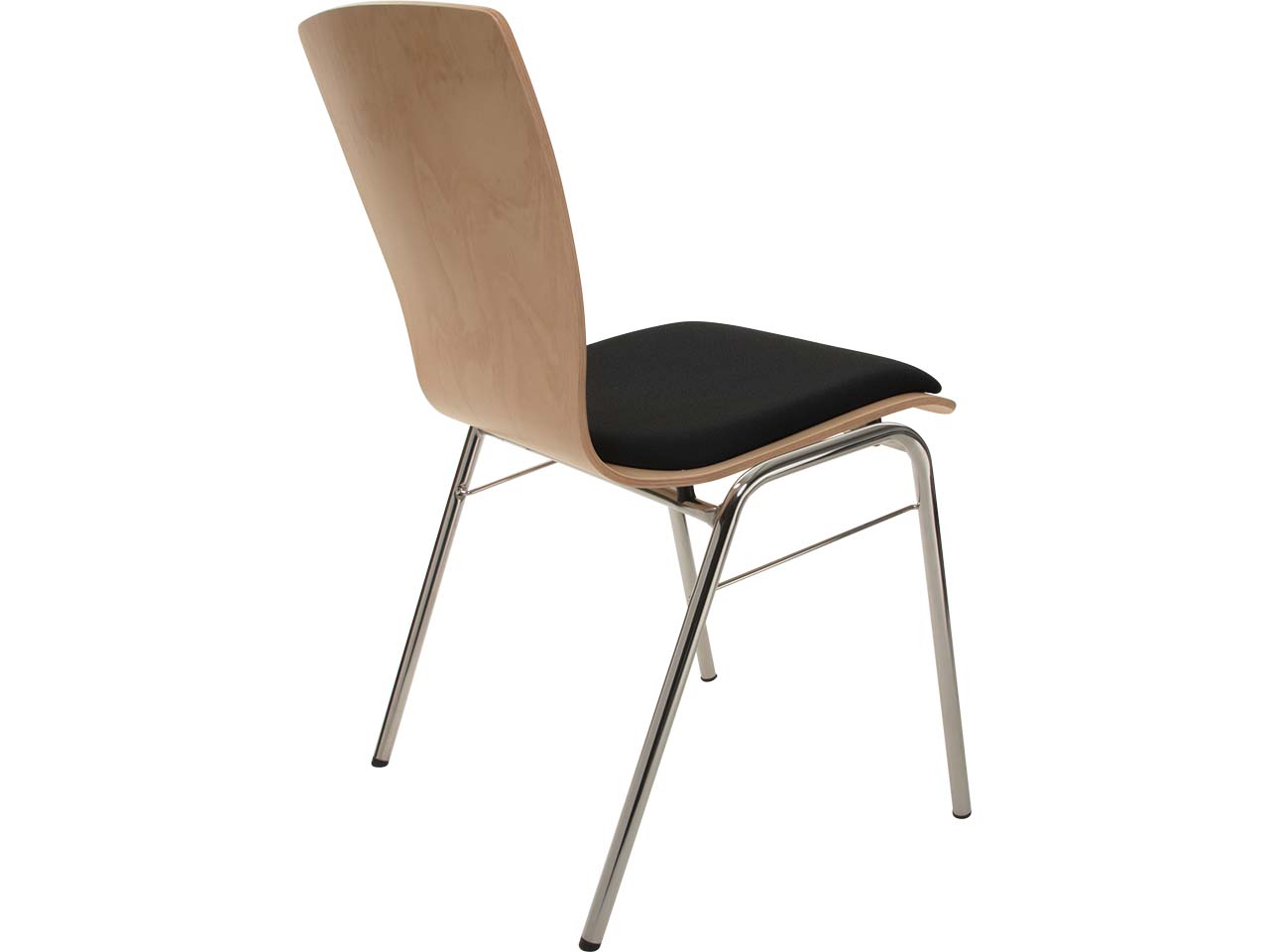 Dieser Besucherstuhl ist die ideale Sitzlösung für Konferenzen, Veranstaltungen, Events, Seminare oder Wartebereiche. Er ist schlicht designt, überzeugt mit harmonischen Formen und natürlicher Optik. Die Sitzschale ist aus Buchenholz gefertigt, das mit Wasserlack nach B1 lackiert ist. Die Lackierung macht den Stuhl schwer entflammbar und beständig gegen Desinfektionsmittel. Höchster Sitzkomfort entsteht durch die Polsterung auf der Sitzfläche und am Rücken. Diese lassen sich bei Bedarf austauschen und erneuern, was den Stuhl besonders langlebig macht. Durch den Steg ist der Stuhl problemlos bis zu 12-fach stapelbar und so platzsparend unterzubringen. Das verchromte Stahlgestell sorgt für hohe Stabilität.