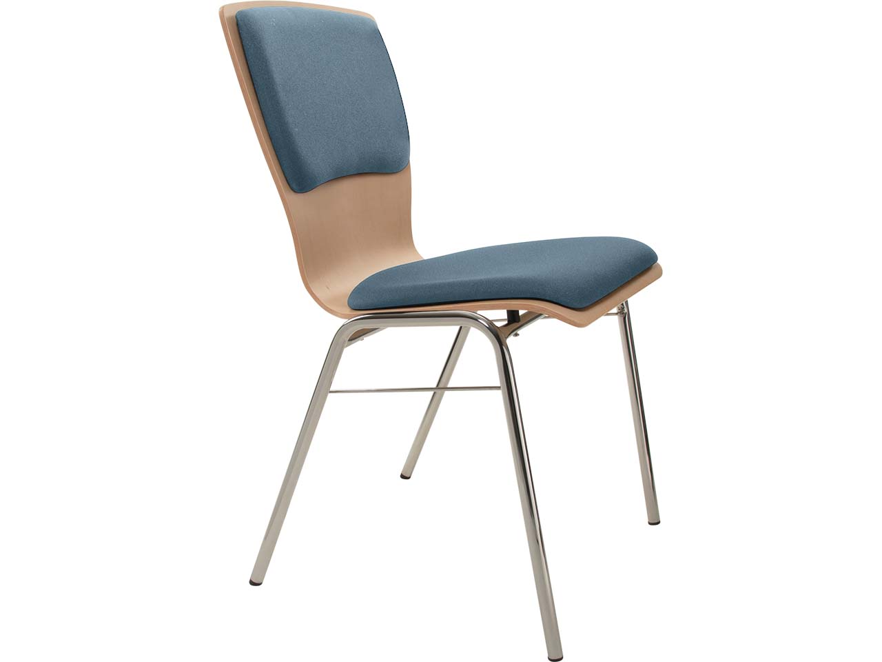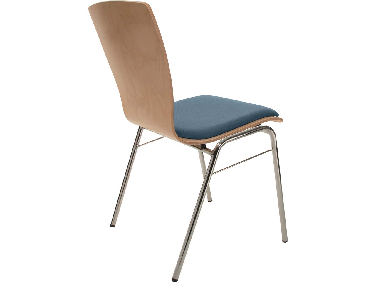 Dieser Besucherstuhl ist die ideale Sitzlösung für Konferenzen, Veranstaltungen, Events, Seminare oder Wartebereiche. Er ist schlicht designt, überzeugt mit harmonischen Formen und natürlicher Optik. Die Sitzschale ist aus Buchenholz gefertigt, das mit Wasserlack nach B1 lackiert ist. Die Lackierung macht den Stuhl schwer entflammbar und beständig gegen Desinfektionsmittel. Höchster Sitzkomfort entsteht durch die Polsterung auf der Sitzfläche und am Rücken. Diese lassen sich bei Bedarf austauschen und erneuern, was den Stuhl besonders langlebig macht. Durch den Steg ist der Stuhl problemlos bis zu 12-fach stapelbar und so platzsparend unterzubringen. Das verchromte Stahlgestell sorgt für hohe Stabilität.