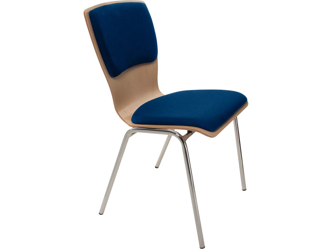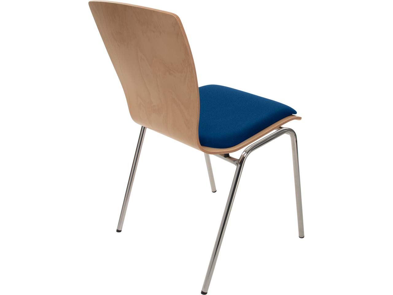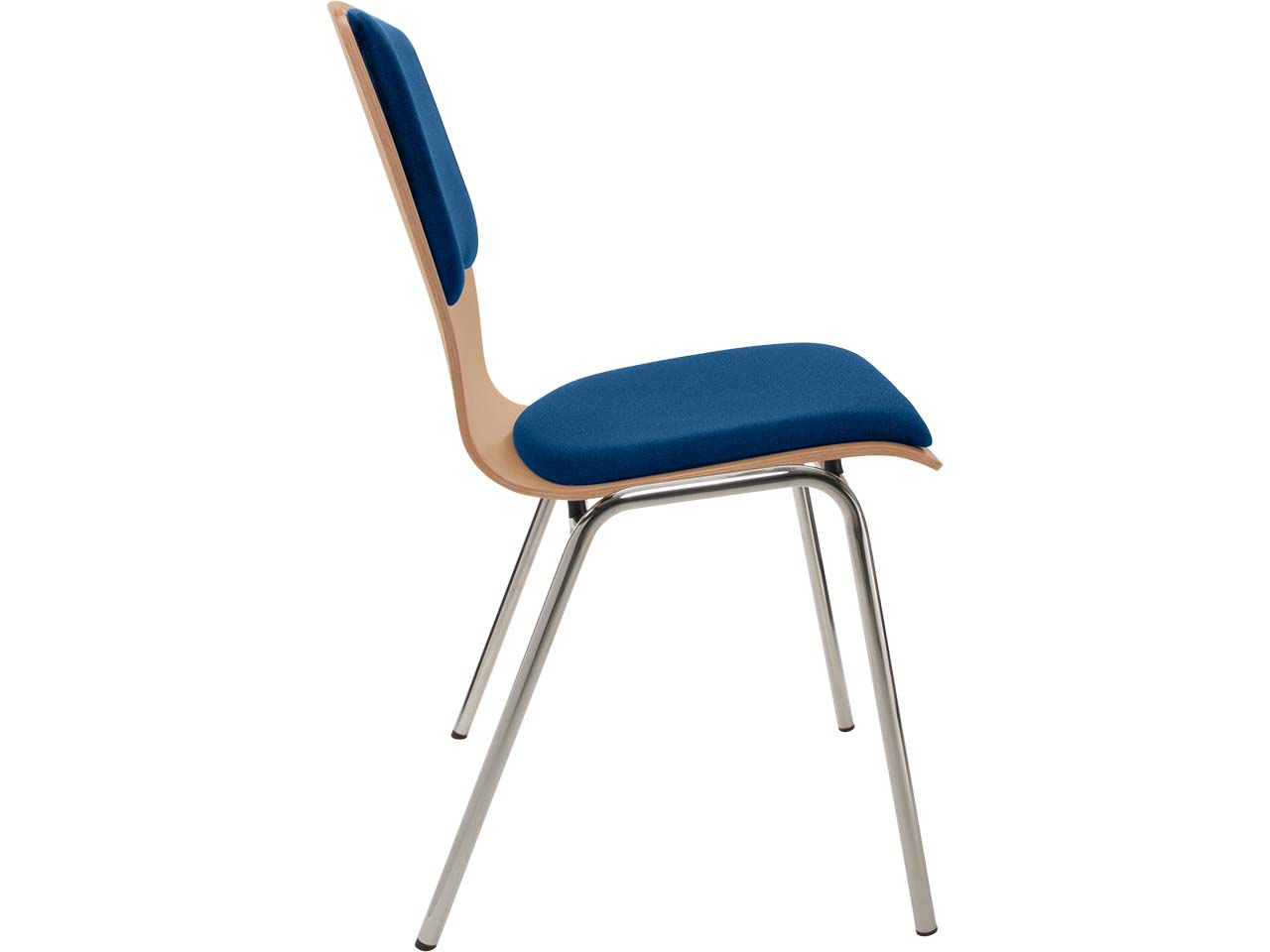 Ein minimalistisch gestalteter Besucherstuhl, der sich ideal für diverse Veranstaltungen und Wartebereiche eignet. Seine sanft geschwungenen Formen passen in jedes Raumkonzept und das Buchenholz verleiht ihm eine natürliche Ästhetik. Sowohl der Sitz als auch die Rückenlehne sind gepolstert, was ein besonders komfortables Sitzen ermöglicht. Die Polster können ausgetauscht oder erneuert werden. Der Stuhl ist mit Wasserlack nach B1 lackiert, wodurch er schwer entflammbar und beständig gegen Desinfektionsmittel ist. Das verchromte Stahlgestell sorgt für hohe Stabilität.