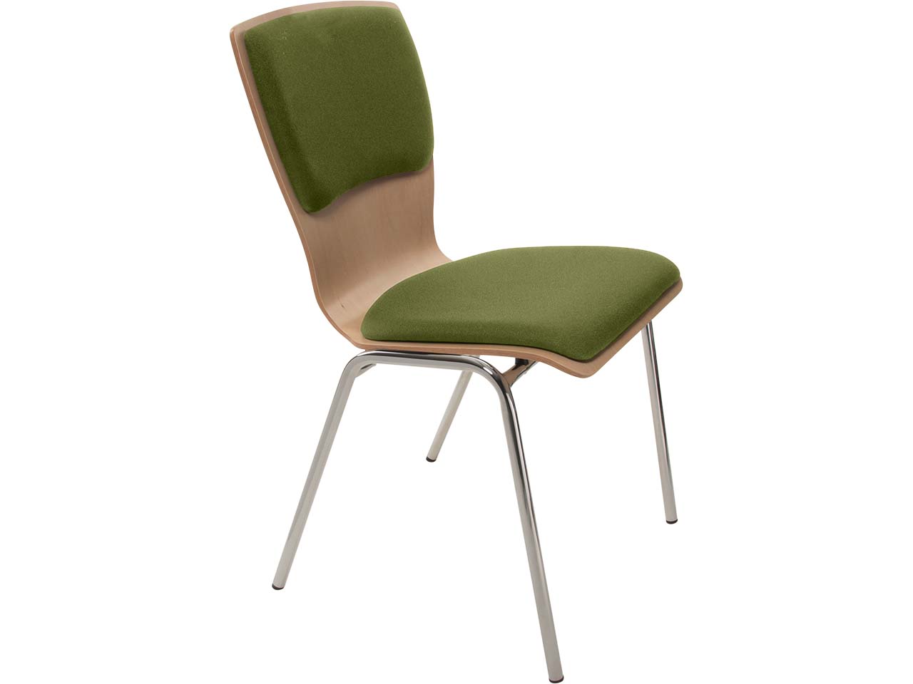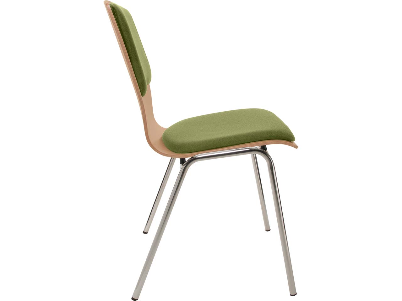 Ein minimalistisch gestalteter Besucherstuhl, der sich ideal für diverse Veranstaltungen und Wartebereiche eignet. Seine sanft geschwungenen Formen passen in jedes Raumkonzept und das Buchenholz verleiht ihm eine natürliche Ästhetik. Sowohl der Sitz als auch die Rückenlehne sind gepolstert, was ein besonders komfortables Sitzen ermöglicht. Die Polster können ausgetauscht oder erneuert werden. Der Stuhl ist mit Wasserlack nach B1 lackiert, wodurch er schwer entflammbar und beständig gegen Desinfektionsmittel ist. Das verchromte Stahlgestell sorgt für hohe Stabilität.