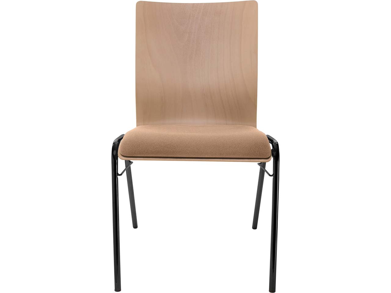 Das Sitzpolster auf dem Besucherstuhl sorgt für höchsten Komfort beim Sitzen. Der Stuhl eignet sich damit ideal für Konferenz- und Seminarräume oder auch Wartezimmer. Das Beste: Die weiche Polsterung kann bei Bedarf ausgetauscht werden. Das macht das Sitzmöbel noch langlebiger. Die Holzschale ist mit Wasserlack nach B1 lackiert. Die Lackierung sorgt dafür, dass das Möbelstück schwer entflammbar und beständig gegen Desinfektionsmittel ist. Der Besucherstuhl mit Steg ist 12-fach stapelbar und kann platzsparend untergebracht werden. Stabilität entsteht durch das pulverbeschichtete Stahlgestell.