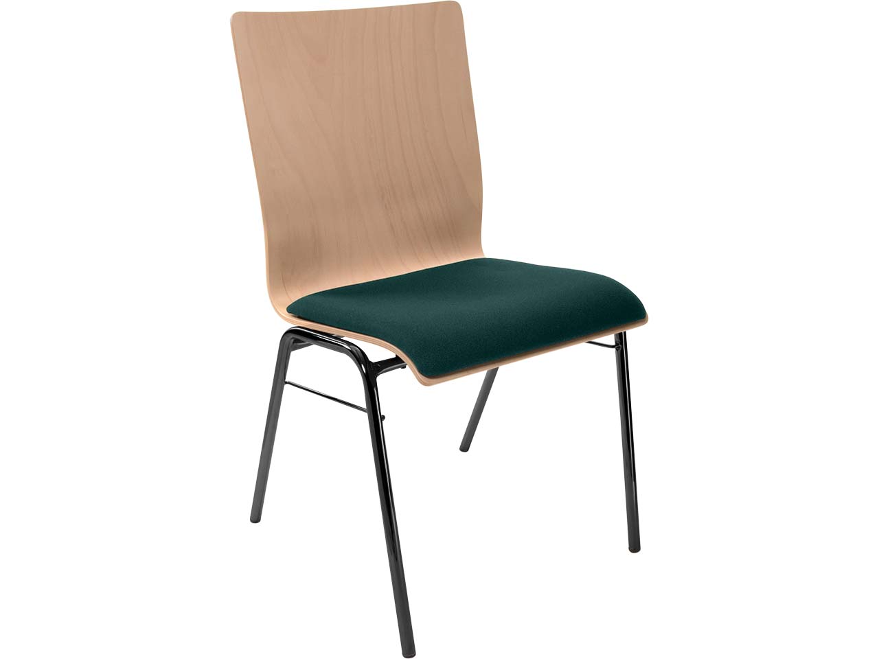 Besucherstuhl "A45" Buche lackiert, Gestell schwarz gepulvert, Steg, Sitzpolster