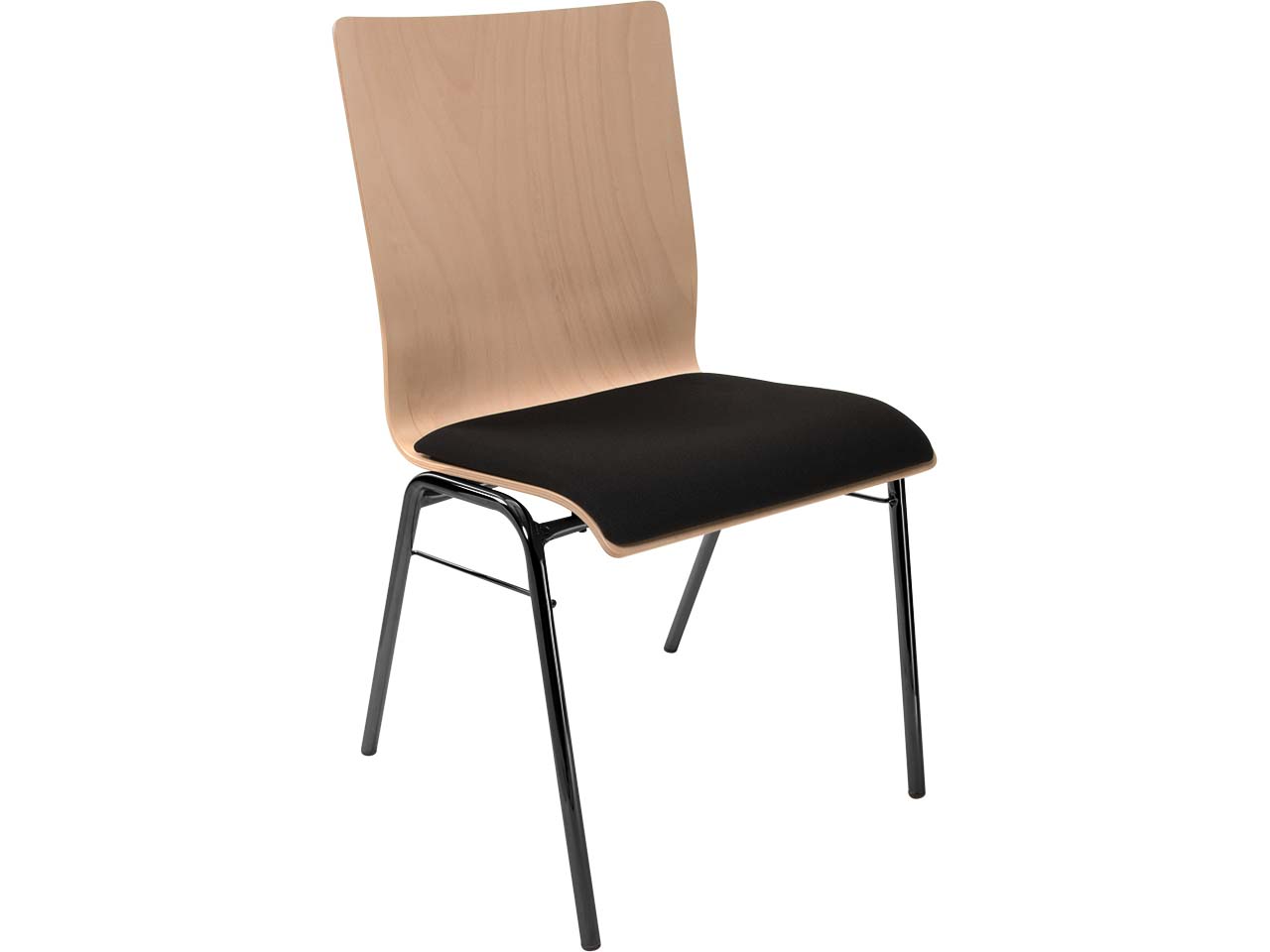 Besucherstuhl "A45" Buche lackiert, Gestell schwarz gepulvert, Steg, Sitzpolster