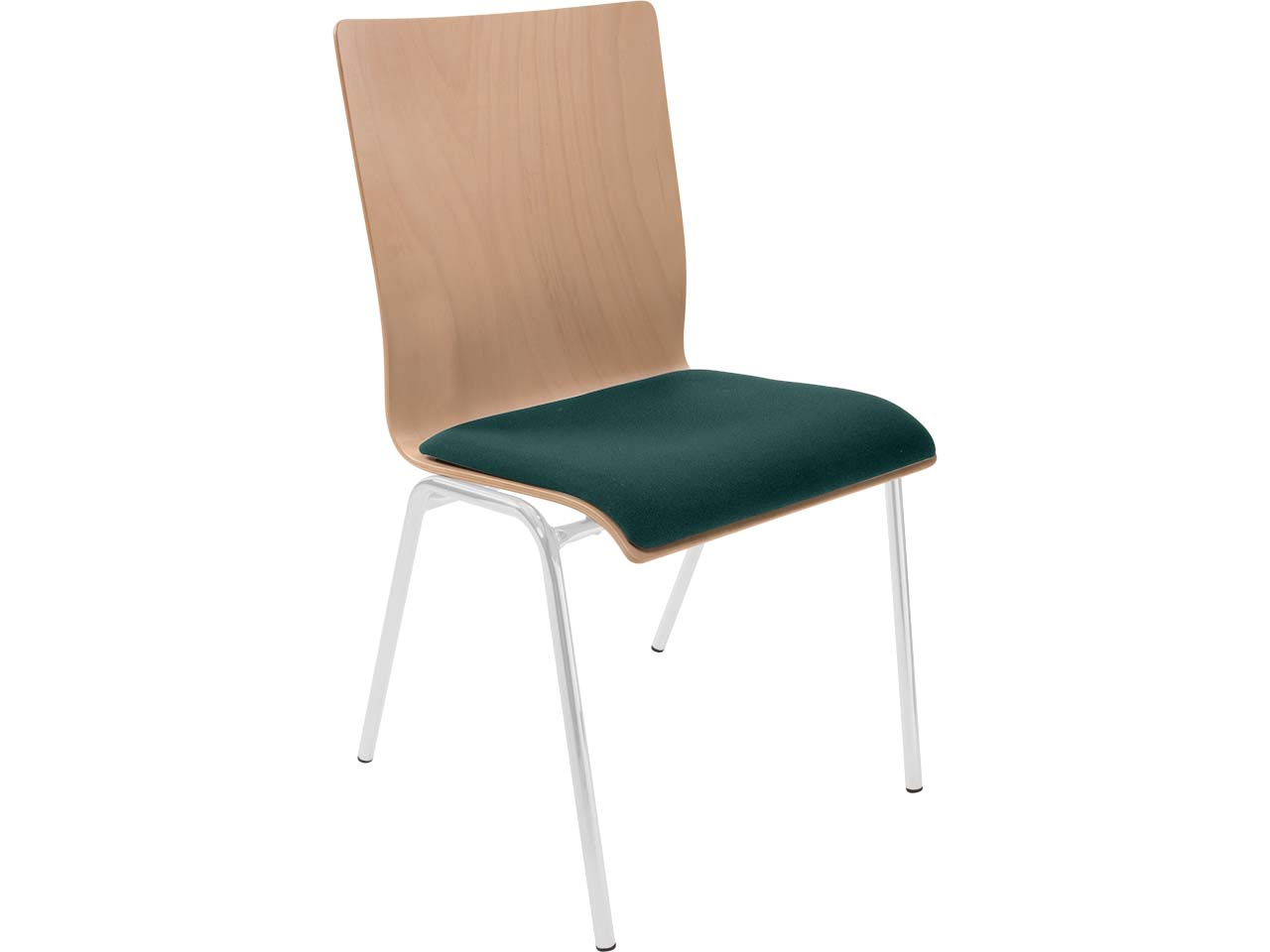 Besucherstuhl "A45" Buche lackiert, Gestell silber gepulvert, Steg, Sitzpolster