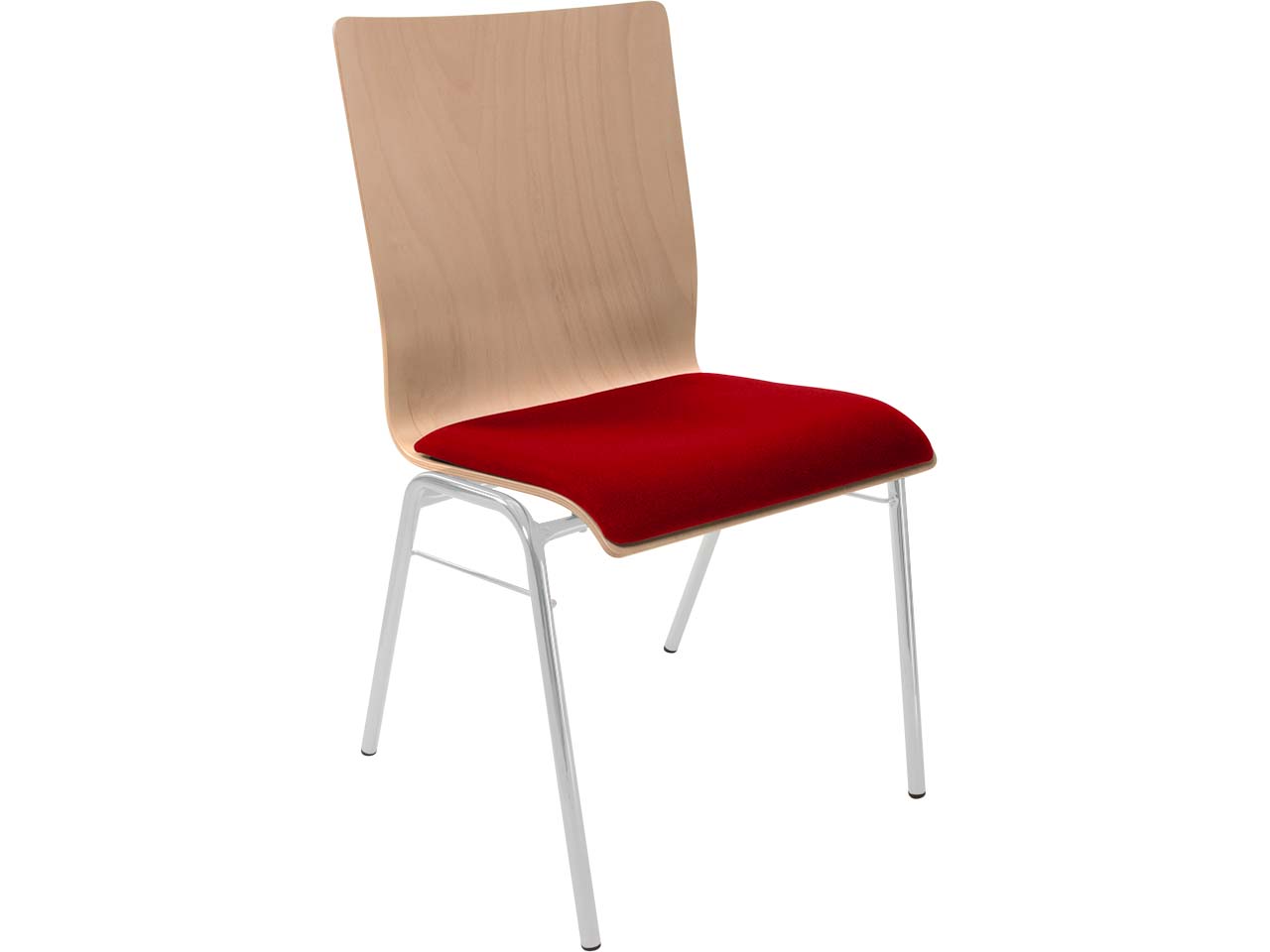 Besucherstuhl "A45" Buche lackiert, Gestell silber gepulvert, Steg, Sitzpolster