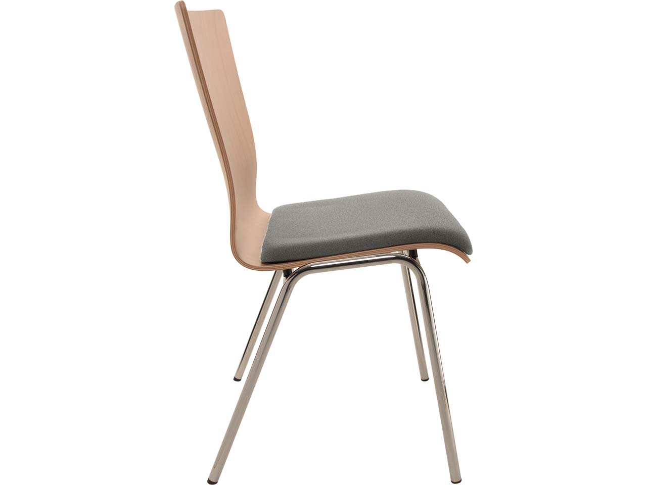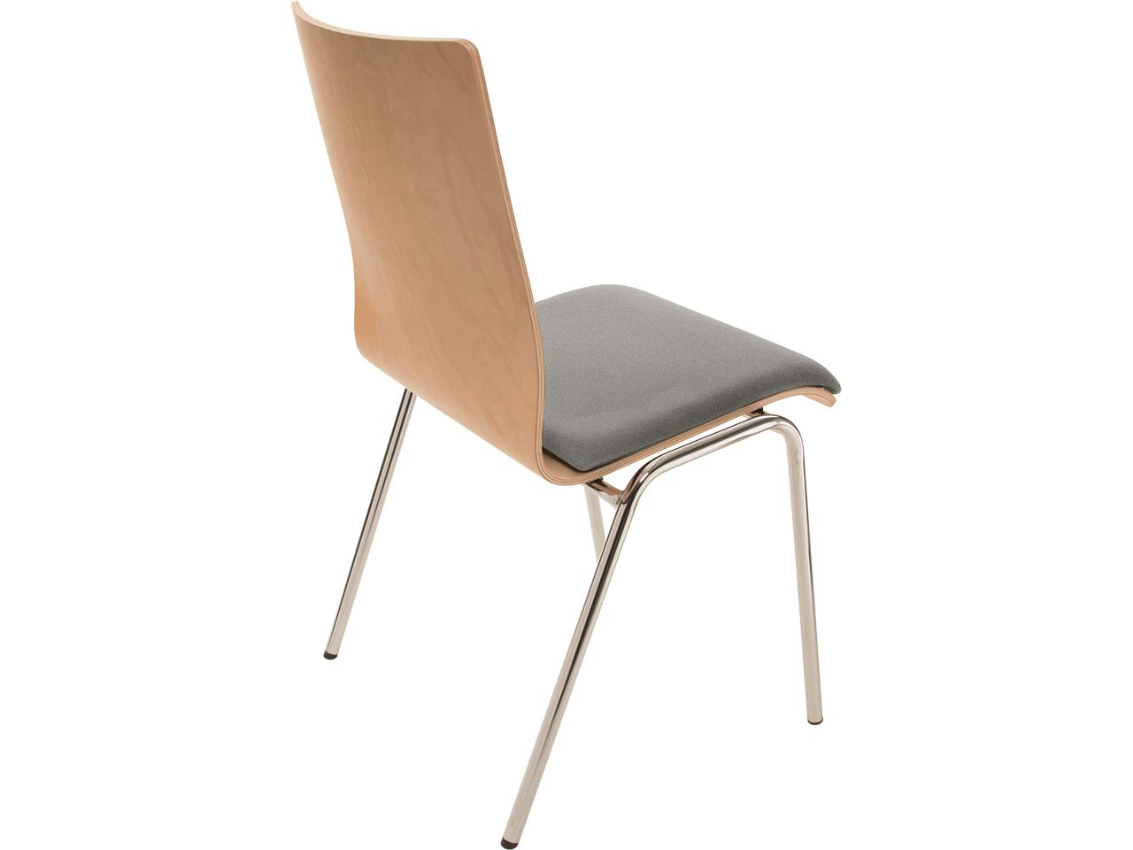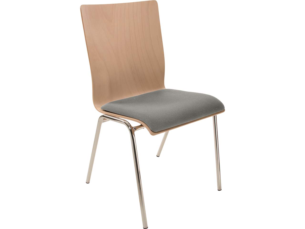Der schlicht gestaltete Besucherstuhl fügt sich nahtlos in bestehende Raumkonzepte ein. Mit seinem verchromten Stahlgestell ist der Stuhl sehr stabil. Er eignet sich hervorragend für Wartezimmer, Besprechungs- oder Konferenzräume. Die Sitzfläche ist mit einem auswechselbaren Sitzkissen gepolstert. Die Holzschale aus Buchenholz ist mit Wasserlack nach B1 lackiert, wodurch der Stuhl schwer entflammbar und beständig gegen Desinfektionsmittel ist.