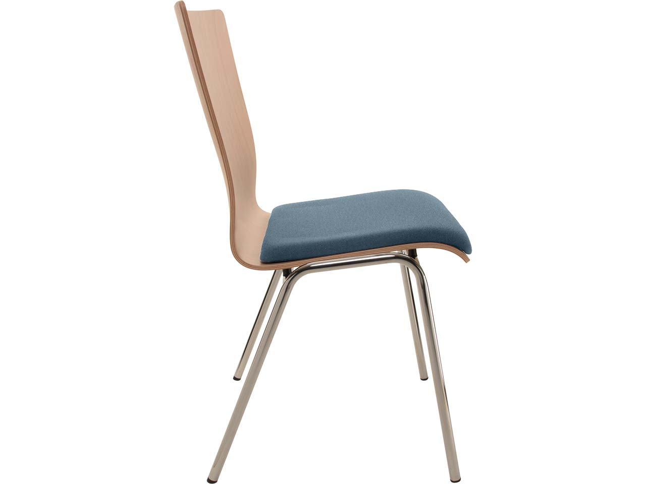 Der schlicht gestaltete Besucherstuhl fügt sich nahtlos in bestehende Raumkonzepte ein. Mit seinem verchromten Stahlgestell ist der Stuhl sehr stabil. Er eignet sich hervorragend für Wartezimmer, Besprechungs- oder Konferenzräume. Die Sitzfläche ist mit einem auswechselbaren Sitzkissen gepolstert. Die Holzschale aus Buchenholz ist mit Wasserlack nach B1 lackiert, wodurch der Stuhl schwer entflammbar und beständig gegen Desinfektionsmittel ist.