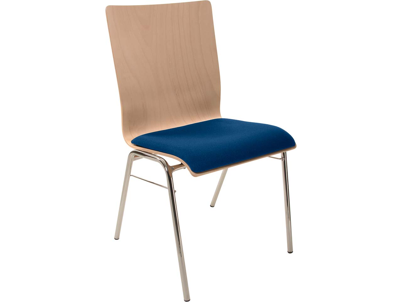 Besucherstuhl "A45" Buche lackiert, Gestell verchromt, Steg, Sitzpolster