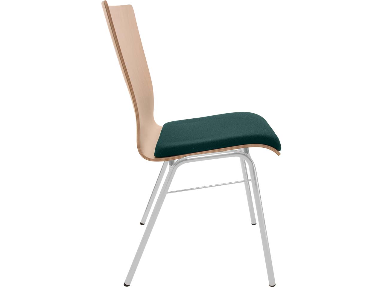 Besucherstuhl "A45" Buche lackiert, Gestell verchromt, Steg, Sitzpolster