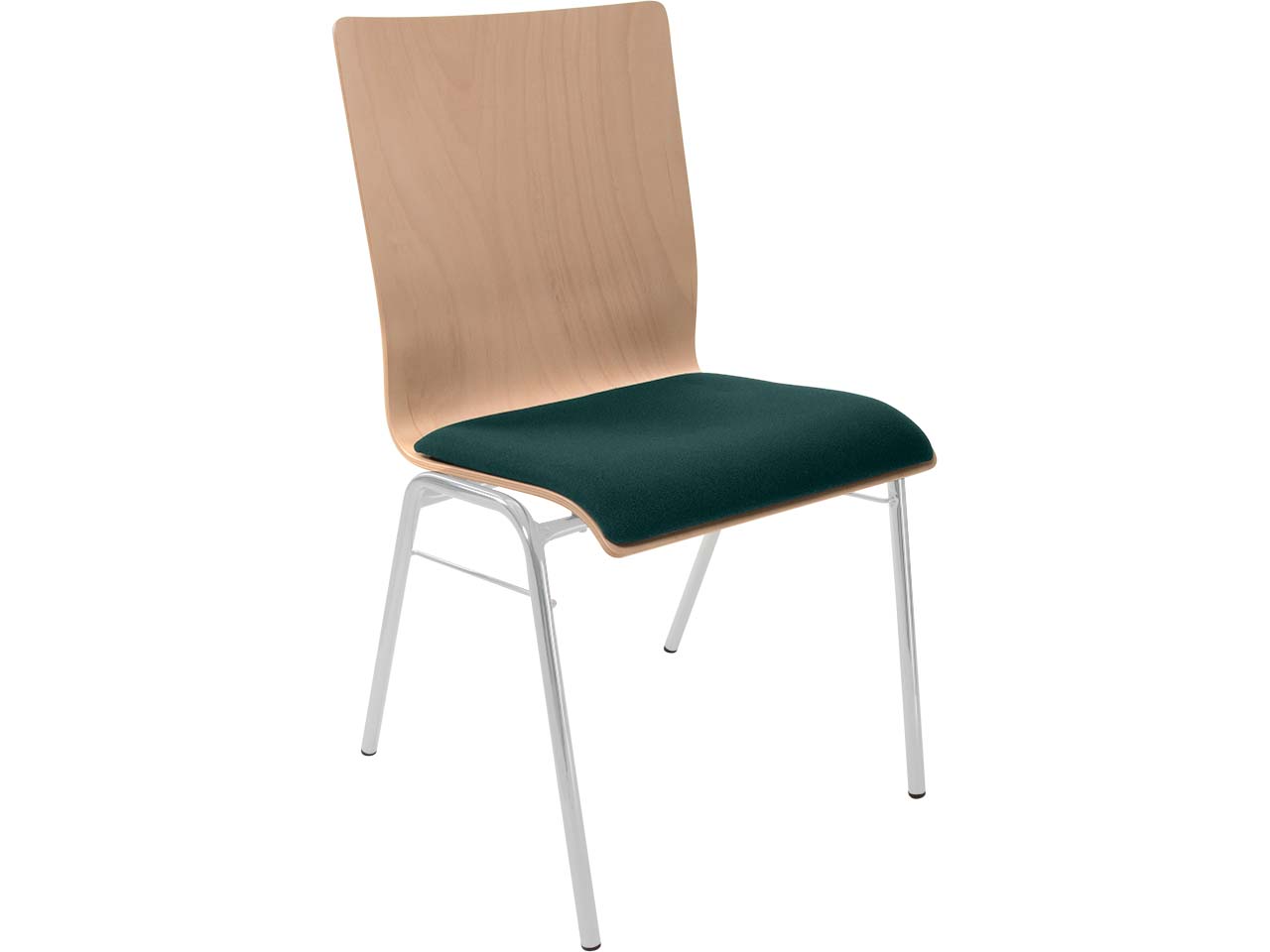 Komfort und Funktionalität vereinen sich in diesem Besucherstuhl. Die mit Wasserlack lackierte Holzschale aus Buche ist mit einem Sitzpolster versehen, das für bequemes Sitzen bei Veranstaltungen, Konferenzen, Seminaren oder im Wartebereich sorgt. Das verchromte Stahlgestell gewährleistet eine hohe Stabilität. Durch die Lackierung mit Wasserlack nach B1 ist der Besucherstuhl schwer entflammbar und beständig gegen Desinfektionsmittel. Bis zu 12 Stühle können platzsparend übereinander gestapelt werden.