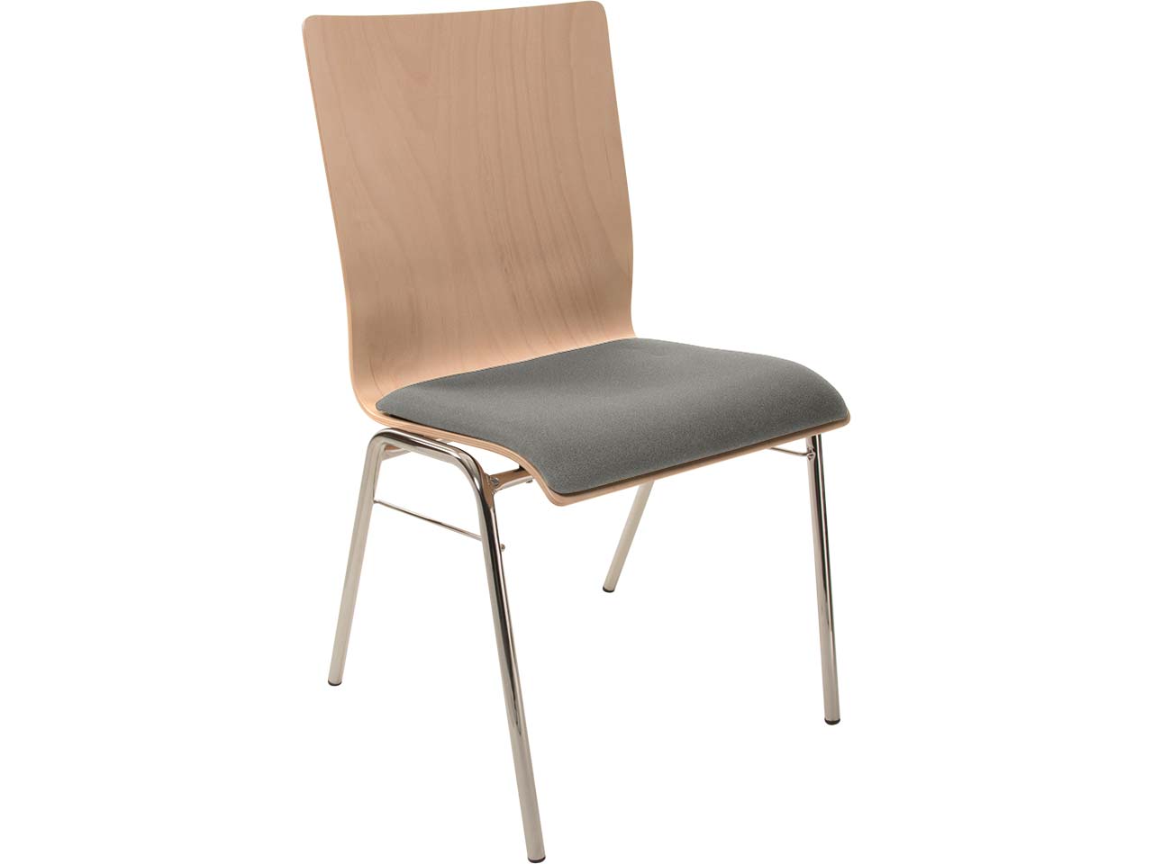 Besucherstuhl "A45" Buche lackiert, Gestell verchromt, Steg, Sitzpolster
