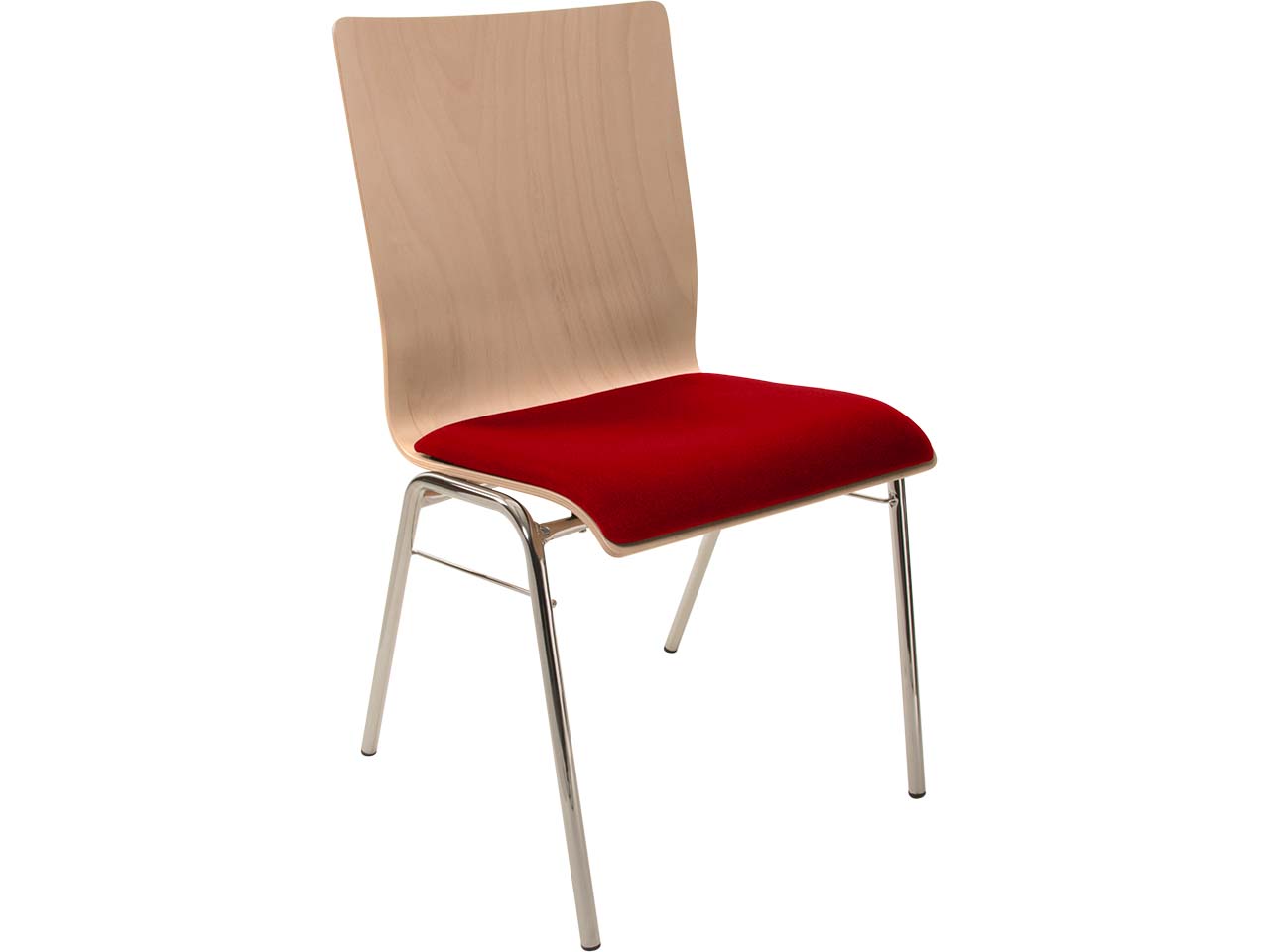 Besucherstuhl "A45" Buche lackiert, Gestell verchromt, Steg, Sitzpolster