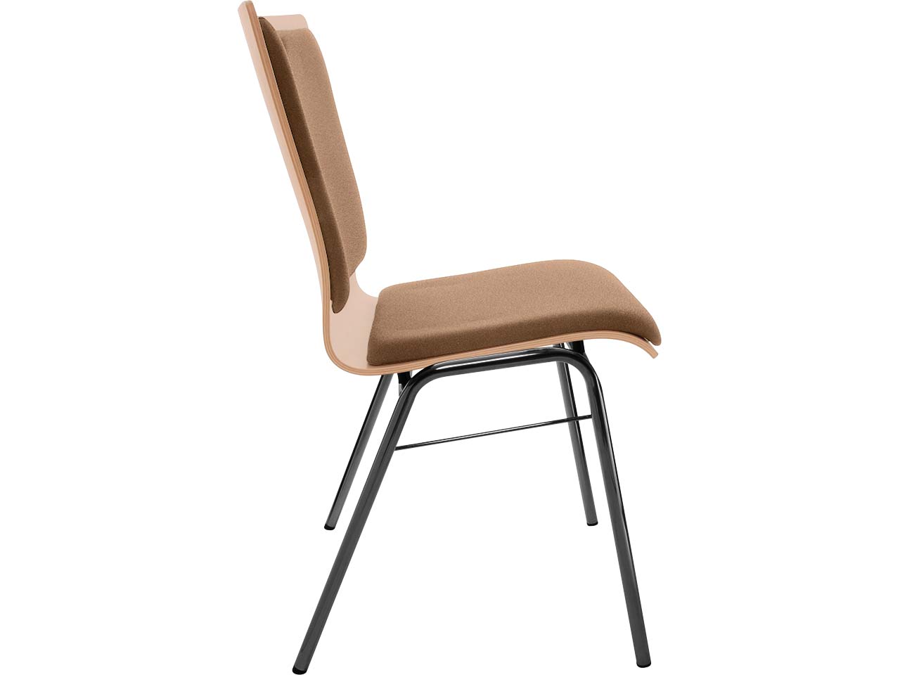 Ganz viel Komfort verspricht dieser sanft geschwungene Besucherstuhl, der sich mit seinem minimalistischen Design optimal in Konferenz- und Seminarräume sowie Wartebereiche integriert. Sitzfläche und Rücken sind angenehm gepolstert. Das Beste: Die Polsterung lässt sich austauschen, was das Sitzmöbel besonders langlebig macht. Die Holzschale ist mit Wasserlack nach B1 lackiert. Die Lackierung sorgt dafür, dass das Möbelstück schwer entflammbar und beständig gegen Desinfektionsmittel ist. Die Stapelbarkeit des Besucherstuhls ermöglicht eine platzsparende Unterbringung. Das pulverbeschichtete Stahlgestell überzeugt mit exzellenter Stabilität.