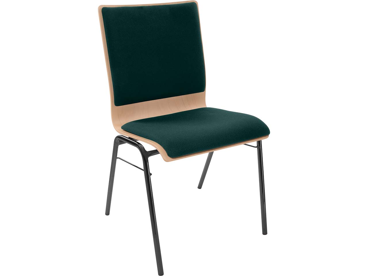 Besucherstuhl "A45" Buche lackiert, Gestell schwarz gepulvert, Steg, Sitz- und Rückenpolster