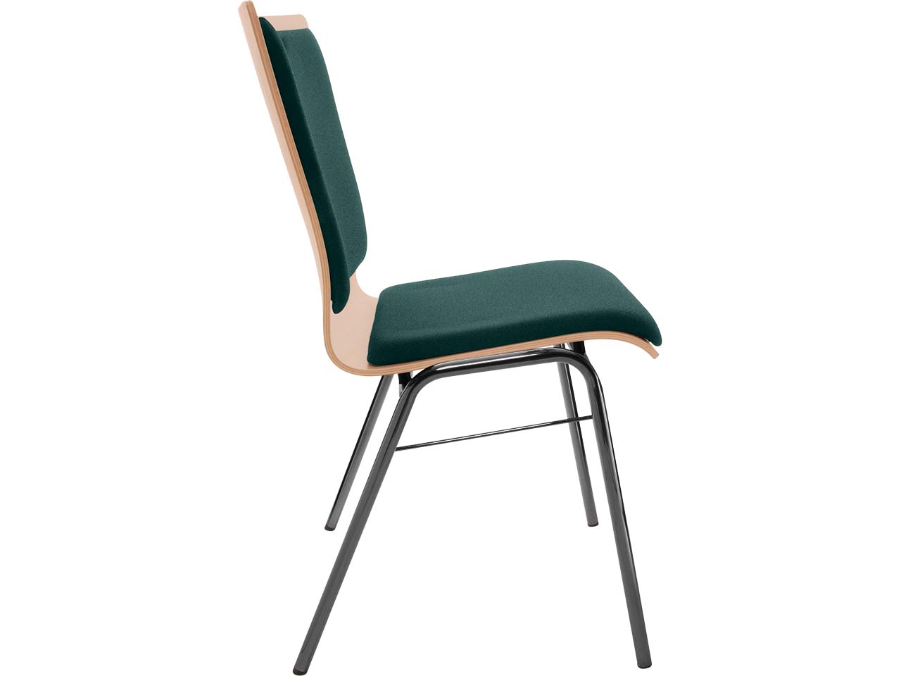 Ganz viel Komfort verspricht dieser sanft geschwungene Besucherstuhl, der sich mit seinem minimalistischen Design optimal in Konferenz- und Seminarräume sowie Wartebereiche integriert. Sitzfläche und Rücken sind angenehm gepolstert. Das Beste: Die Polsterung lässt sich austauschen, was das Sitzmöbel besonders langlebig macht. Die Holzschale ist mit Wasserlack nach B1 lackiert. Die Lackierung sorgt dafür, dass das Möbelstück schwer entflammbar und beständig gegen Desinfektionsmittel ist. Die Stapelbarkeit des Besucherstuhls ermöglicht eine platzsparende Unterbringung. Das pulverbeschichtete Stahlgestell überzeugt mit exzellenter Stabilität.
