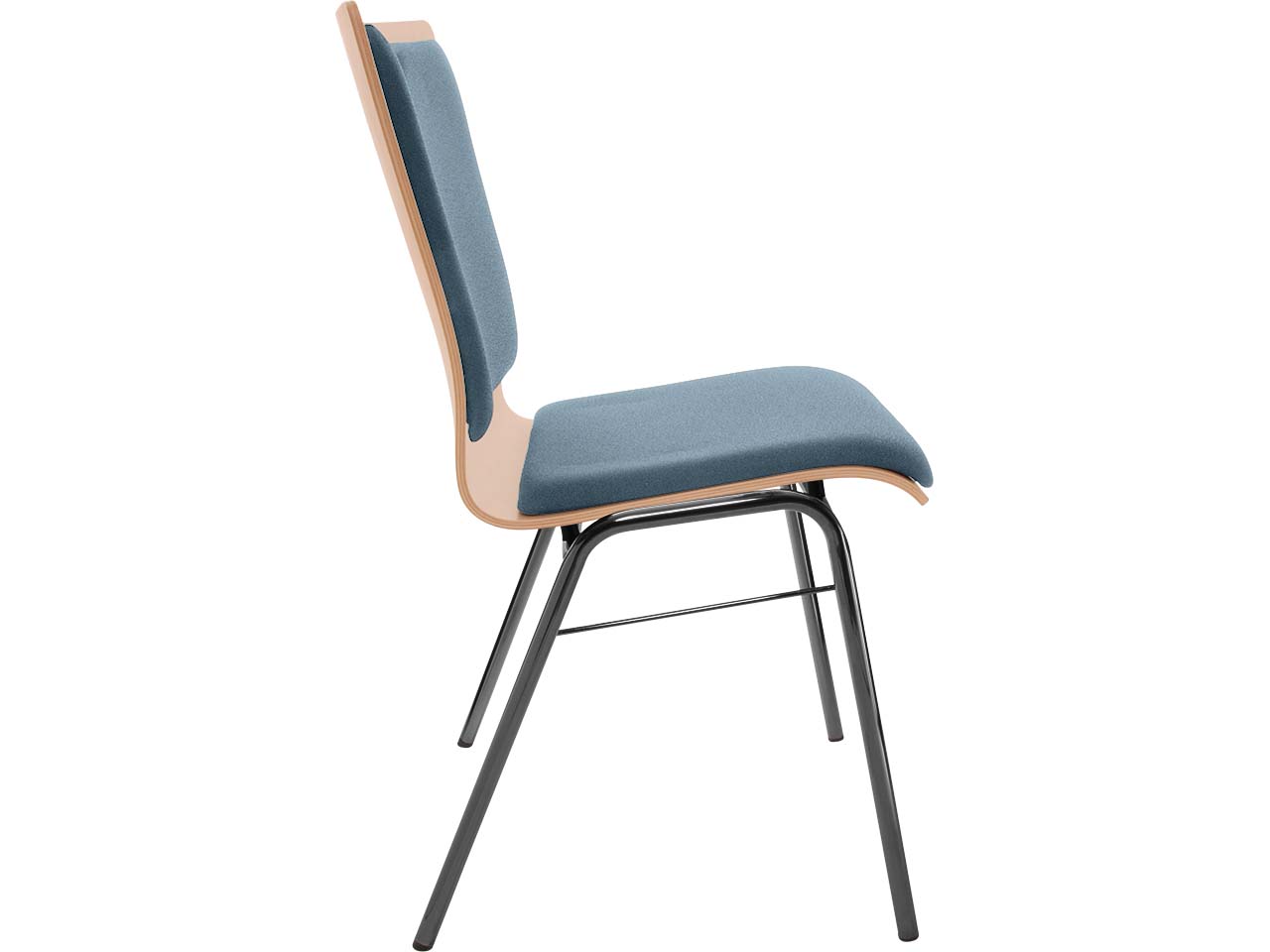 Ganz viel Komfort verspricht dieser sanft geschwungene Besucherstuhl, der sich mit seinem minimalistischen Design optimal in Konferenz- und Seminarräume sowie Wartebereiche integriert. Sitzfläche und Rücken sind angenehm gepolstert. Das Beste: Die Polsterung lässt sich austauschen, was das Sitzmöbel besonders langlebig macht. Die Holzschale ist mit Wasserlack nach B1 lackiert. Die Lackierung sorgt dafür, dass das Möbelstück schwer entflammbar und beständig gegen Desinfektionsmittel ist. Die Stapelbarkeit des Besucherstuhls ermöglicht eine platzsparende Unterbringung. Das pulverbeschichtete Stahlgestell überzeugt mit exzellenter Stabilität.