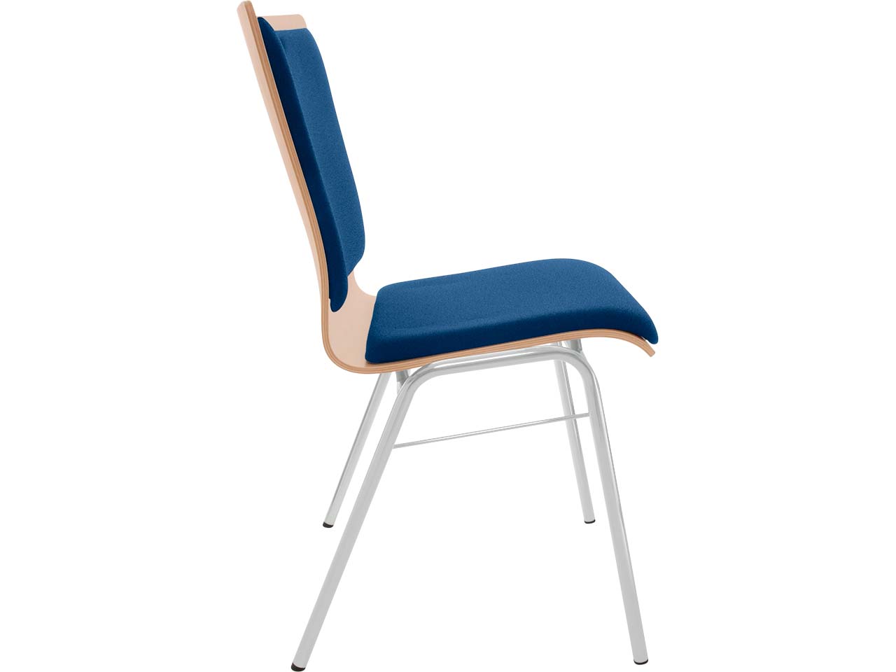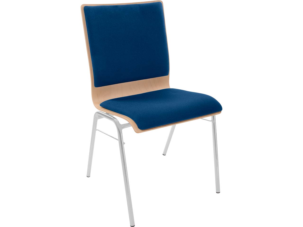 Hoher Sitzkomfort durch Sitz- und Rückenpolster: Auf diesem Besucherstuhl sitzt man in Wartezimmern, Konferenz- und Seminarräumen sehr komfortabel. Im Design ist der Stuhl schlicht gehalten, wodurch er in verschiedene Raumkonzepte passt. Die Sitzschale besteht aus Buchenholz, das mit Wasserlack nach B1 lackiert ist. Die Lackierung sorgt dafür, dass das Möbelstück schwer entflammbar und beständig gegen Desinfektionsmittel ist. Der Besucherstuhl mit Steg lässt sich 12-fach stapeln und platzsparend unterbringen. Stabilität entsteht durch das pulverbeschichtete Stahlgestell.