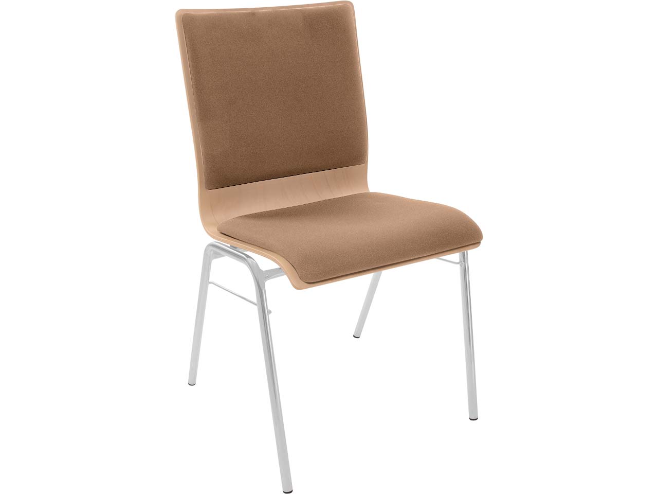 Hoher Sitzkomfort durch Sitz- und Rückenpolster: Auf diesem Besucherstuhl sitzt man in Wartezimmern, Konferenz- und Seminarräumen sehr komfortabel. Im Design ist der Stuhl schlicht gehalten, wodurch er in verschiedene Raumkonzepte passt. Die Sitzschale besteht aus Buchenholz, das mit Wasserlack nach B1 lackiert ist. Die Lackierung sorgt dafür, dass das Möbelstück schwer entflammbar und beständig gegen Desinfektionsmittel ist. Der Besucherstuhl mit Steg lässt sich 12-fach stapeln und platzsparend unterbringen. Stabilität entsteht durch das pulverbeschichtete Stahlgestell.