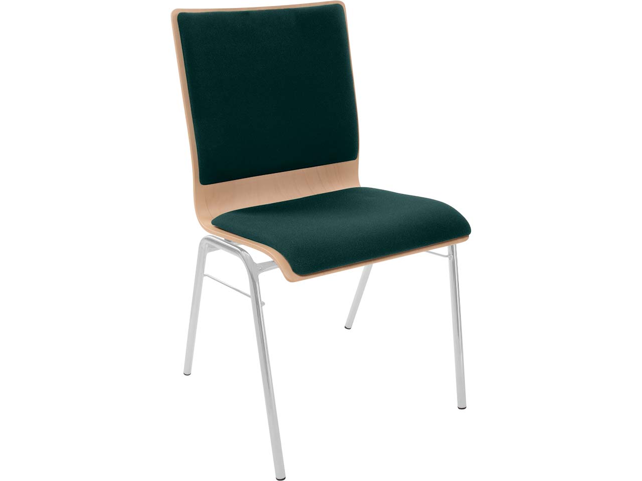 Besucherstuhl "A45" Buche lackiert, Gestell silber gepulvert, Steg, Sitz- und Rückenpolster