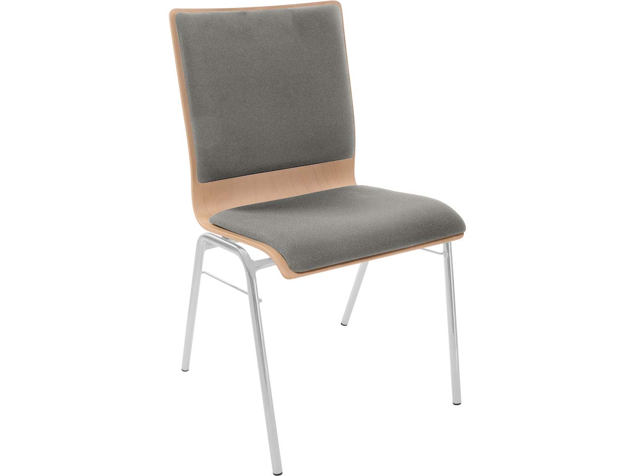 Hoher Sitzkomfort durch Sitz- und Rückenpolster: Auf diesem Besucherstuhl sitzt man in Wartezimmern, Konferenz- und Seminarräumen sehr komfortabel. Im Design ist der Stuhl schlicht gehalten, wodurch er in verschiedene Raumkonzepte passt. Die Sitzschale besteht aus Buchenholz, das mit Wasserlack nach B1 lackiert ist. Die Lackierung sorgt dafür, dass das Möbelstück schwer entflammbar und beständig gegen Desinfektionsmittel ist. Der Besucherstuhl mit Steg lässt sich 12-fach stapeln und platzsparend unterbringen. Stabilität entsteht durch das pulverbeschichtete Stahlgestell.