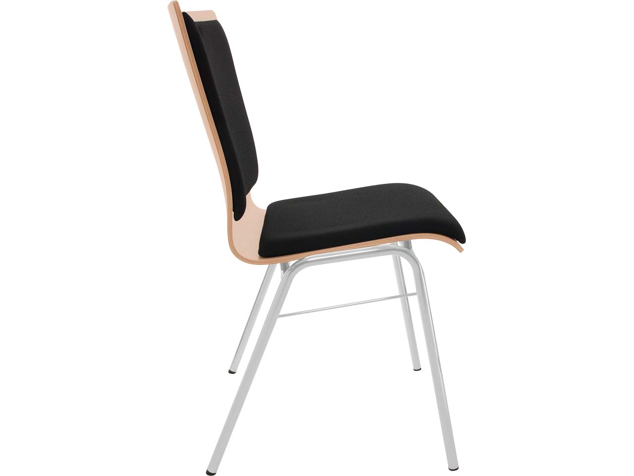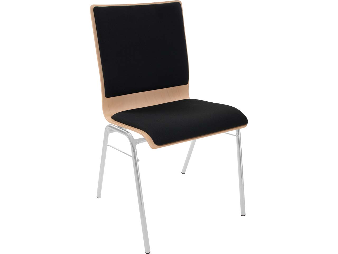 Hoher Sitzkomfort durch Sitz- und Rückenpolster: Auf diesem Besucherstuhl sitzt man in Wartezimmern, Konferenz- und Seminarräumen sehr komfortabel. Im Design ist der Stuhl schlicht gehalten, wodurch er in verschiedene Raumkonzepte passt. Die Sitzschale besteht aus Buchenholz, das mit Wasserlack nach B1 lackiert ist. Die Lackierung sorgt dafür, dass das Möbelstück schwer entflammbar und beständig gegen Desinfektionsmittel ist. Der Besucherstuhl mit Steg lässt sich 12-fach stapeln und platzsparend unterbringen. Stabilität entsteht durch das pulverbeschichtete Stahlgestell.