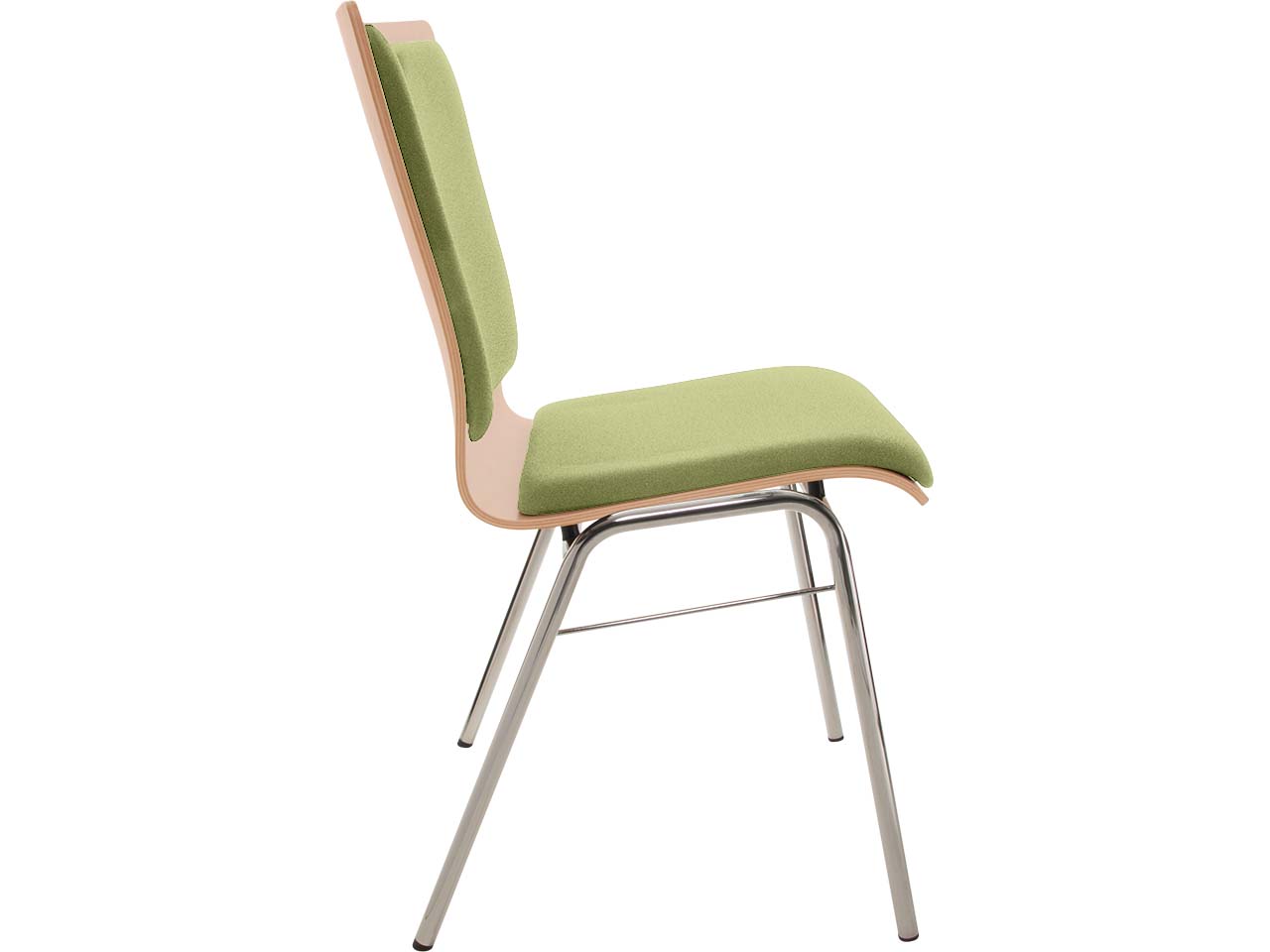 Ganz viel Komfort und schlichtes Design zeichnen diesen stapelbaren Besucherstuhl aus. An Sitzfläche und Rücken sind Polster angebracht, die dafür sorgen, dass man bequem sitzt. Damit ist der Stuhl ideal für Veranstaltungen, Seminare, Konferenzen oder den Wartebereich. Die Holzschale aus Buche ist mit Wasserlack nach B1 lackiert und damit schwer entflammbar und desinfektionsmittelbeständig. Die Polsterung ist austauschbar. Bis zu 12 Stühle können platzsparend gestapelt werden.