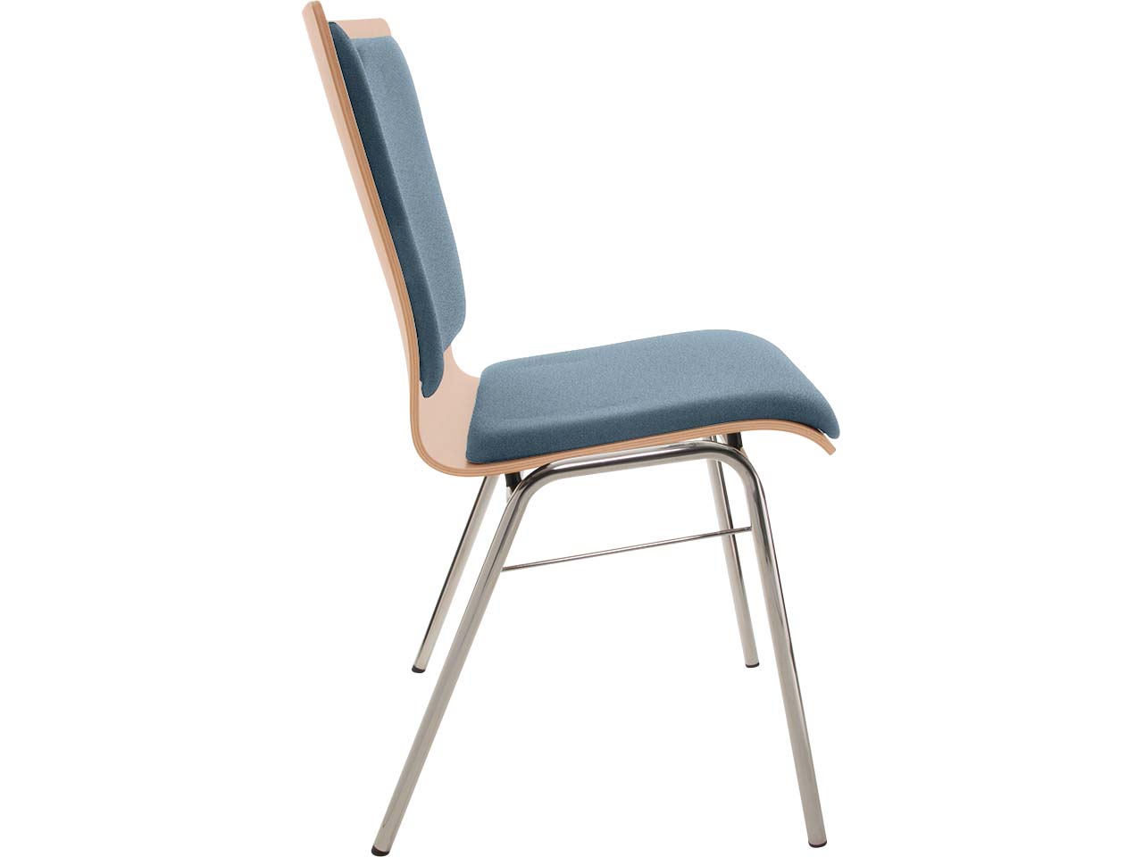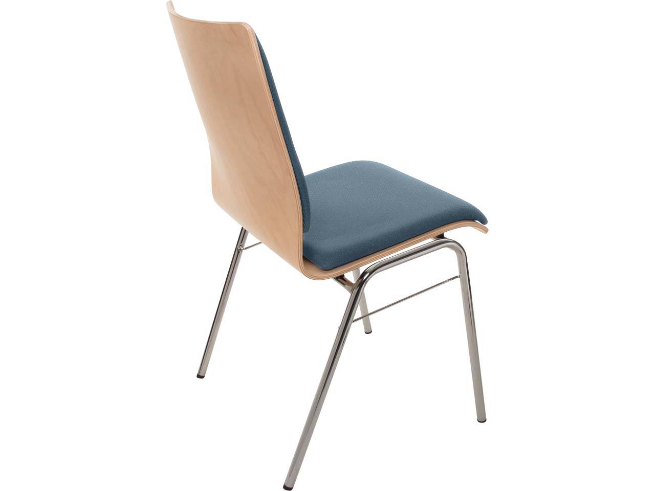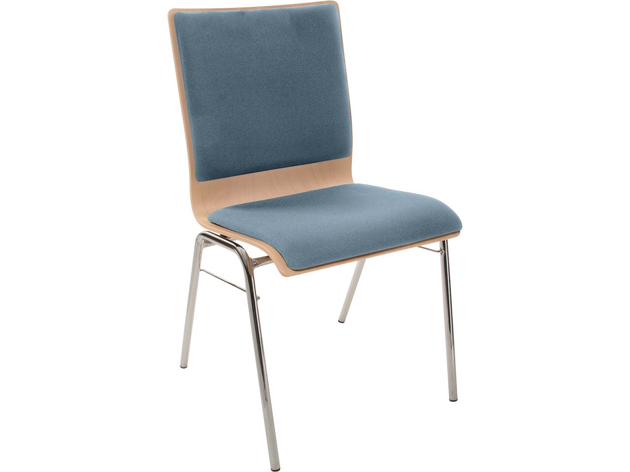Ganz viel Komfort und schlichtes Design zeichnen diesen stapelbaren Besucherstuhl aus. An Sitzfläche und Rücken sind Polster angebracht, die dafür sorgen, dass man bequem sitzt. Damit ist der Stuhl ideal für Veranstaltungen, Seminare, Konferenzen oder den Wartebereich. Die Holzschale aus Buche ist mit Wasserlack nach B1 lackiert und damit schwer entflammbar und desinfektionsmittelbeständig. Die Polsterung ist austauschbar. Bis zu 12 Stühle können platzsparend gestapelt werden.