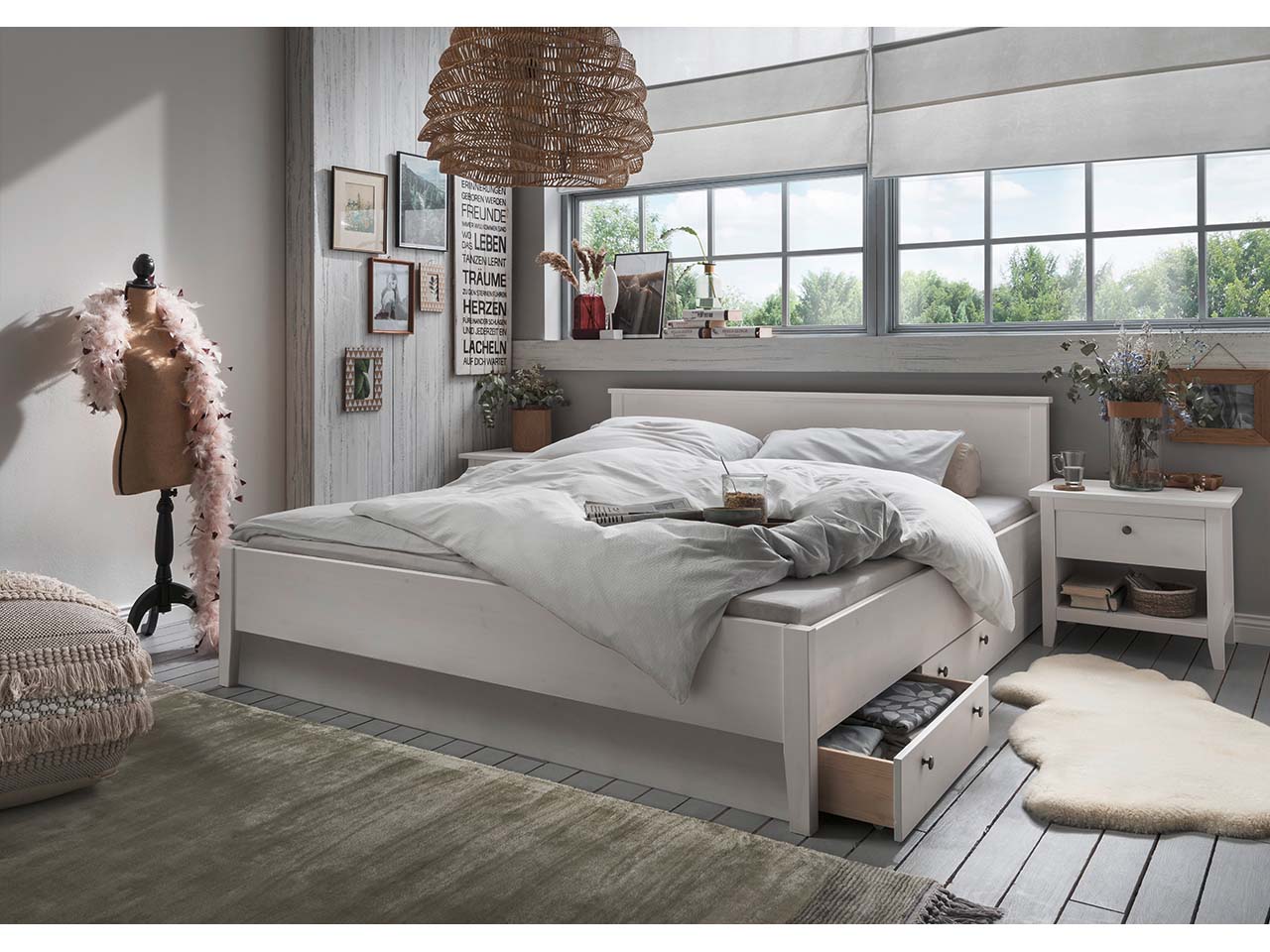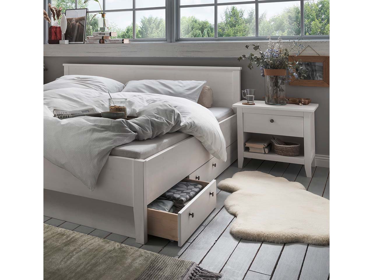 Ordnung schaffen im Schlafzimmer: Die Schubladen sind perfekt auf das gleichnamige Bett abgestimmt und ermöglichen es, Platz optimal auszunutzen. Die Schubladen mit praktischen Griffen sind aus massivem, FSC-zertifiziertem Kiefernholz gefertigt und zeichnen sich durch ihre robuste, langlebige Qualität aus. Sie eignen sich um z.B. Bettlaken, Bettwäsche oder Kissen aufzubewahren. Wie das Bett sind auch die Schubladen in Weiß oder Natur (gelaugt) erhältlich. B 199 x T 55 x H 25 cm.